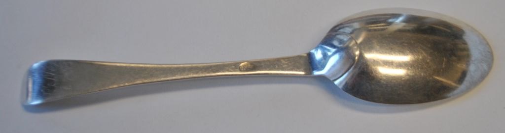 Knud Rasmussen Brandt (1701 - 1778) Horsens, Danmark: Barok sølv spiseske. Stemplet. Udekoreret. L.: 19,8,1 cm. Vægt: 47 gram. Med navneindgraveringer bag på og årstallet 1745.Emne nummer: 28850