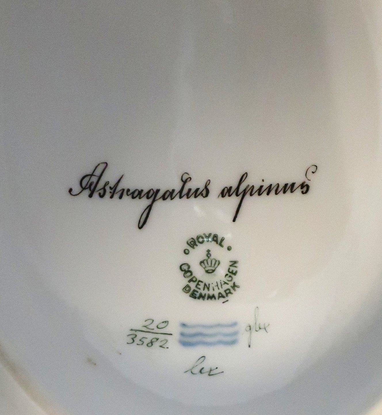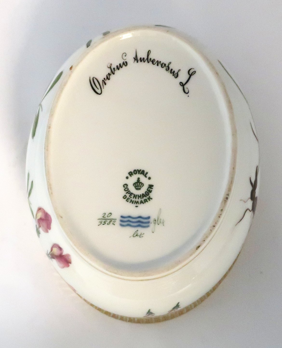 Royal Copenhagen. Flora Danica. Lille Terrin / Sukkerskål. Model 3582. Længde 15,5 cm. (1 sortering). Orobus tuberosus L & Astragalus alpinus
