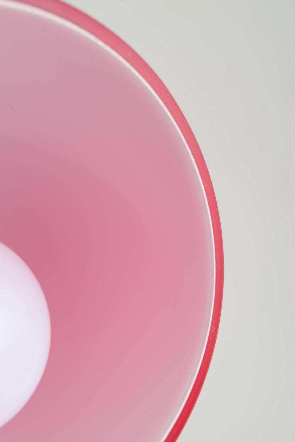 Skandinavisk belysningsdesign i den sene del af det 20. århundrede kombinerede ofte enkle, skulpturelle silhuetter med stærke, rene farver. Mundblæst kunstglas blev brugt til at skabe dybde og lysgennemgang i pendler, hvor den aflange form og den klare farvemætning giver et markant, moderne udtryk både tændt og slukket.