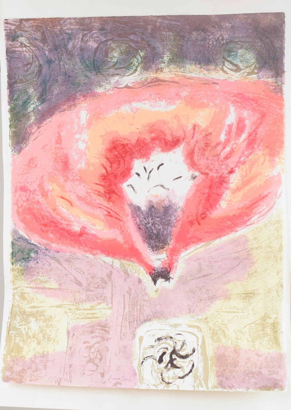 Anna Siek, farvelitografi, polsk billedkunstner.Motiv med organiske og abstrakte former udført som farvelitografi, signeret og nummereret 55/150.