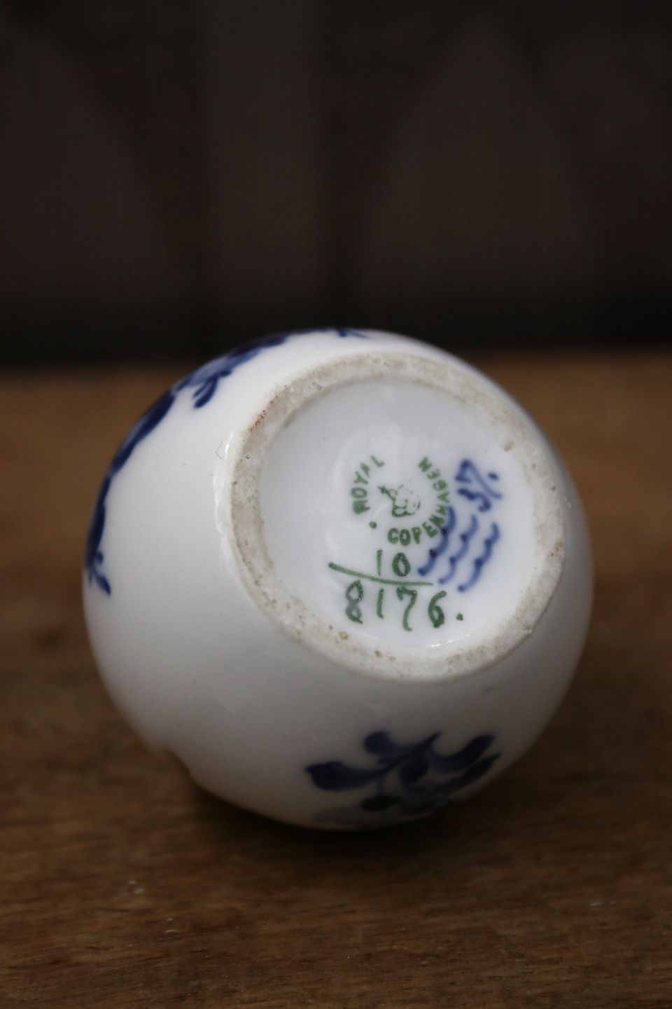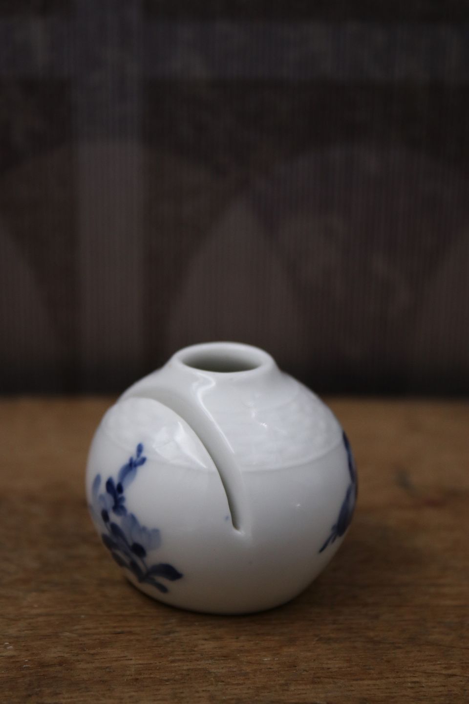 Royal Copehagen Blå Blomst Flettet bordkortholder / kuvertvase.Dia.5cm. Dekorationsnummer: 10/8176. 1.sortering. stemplet fra år 1898-1923.