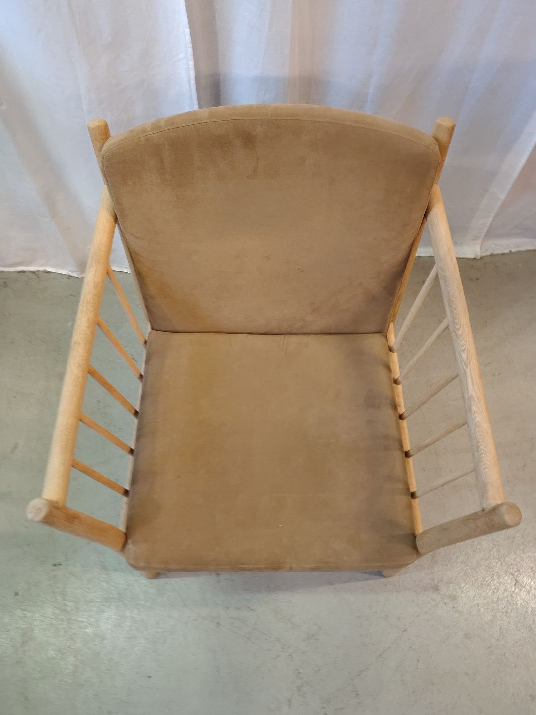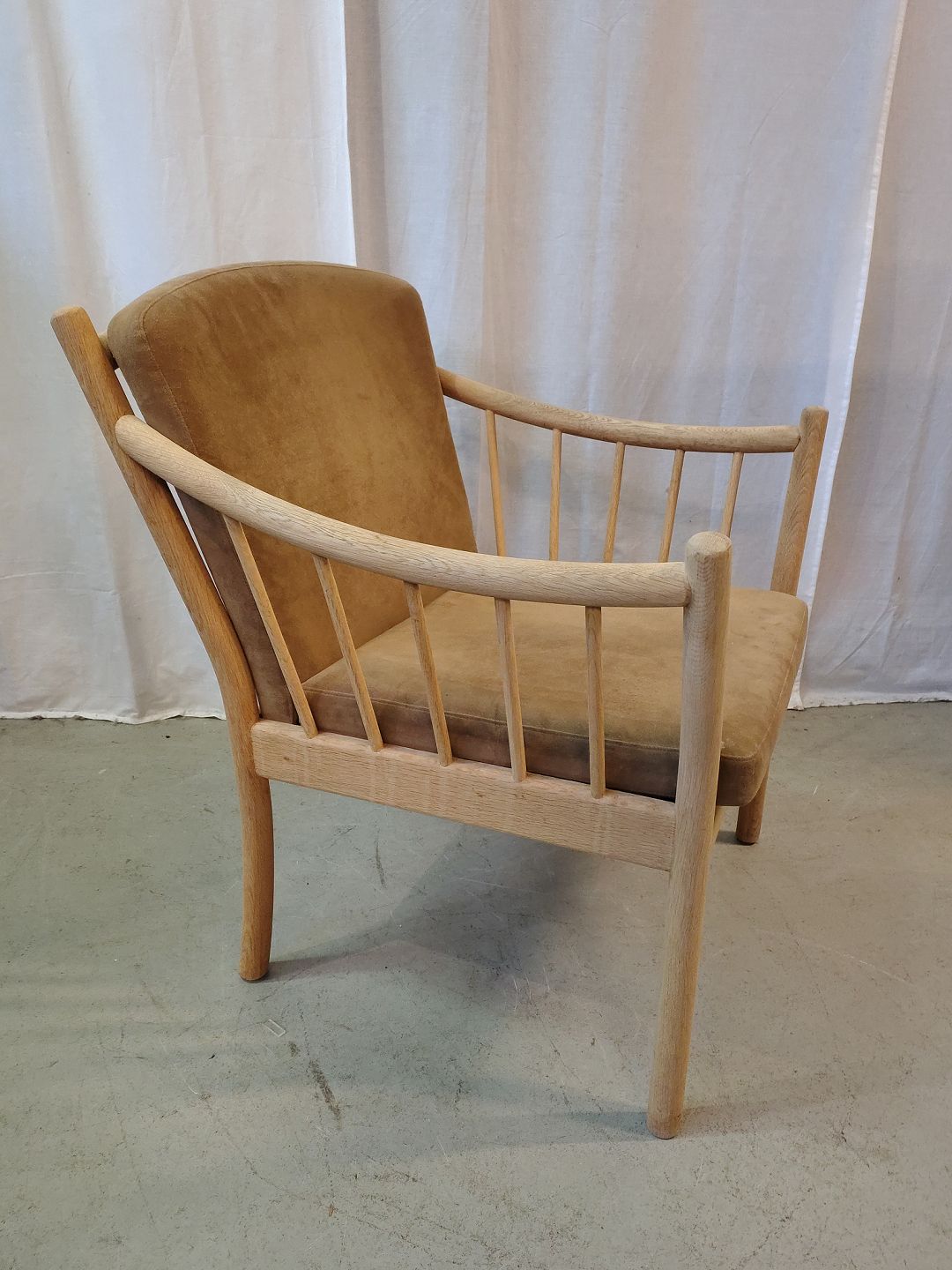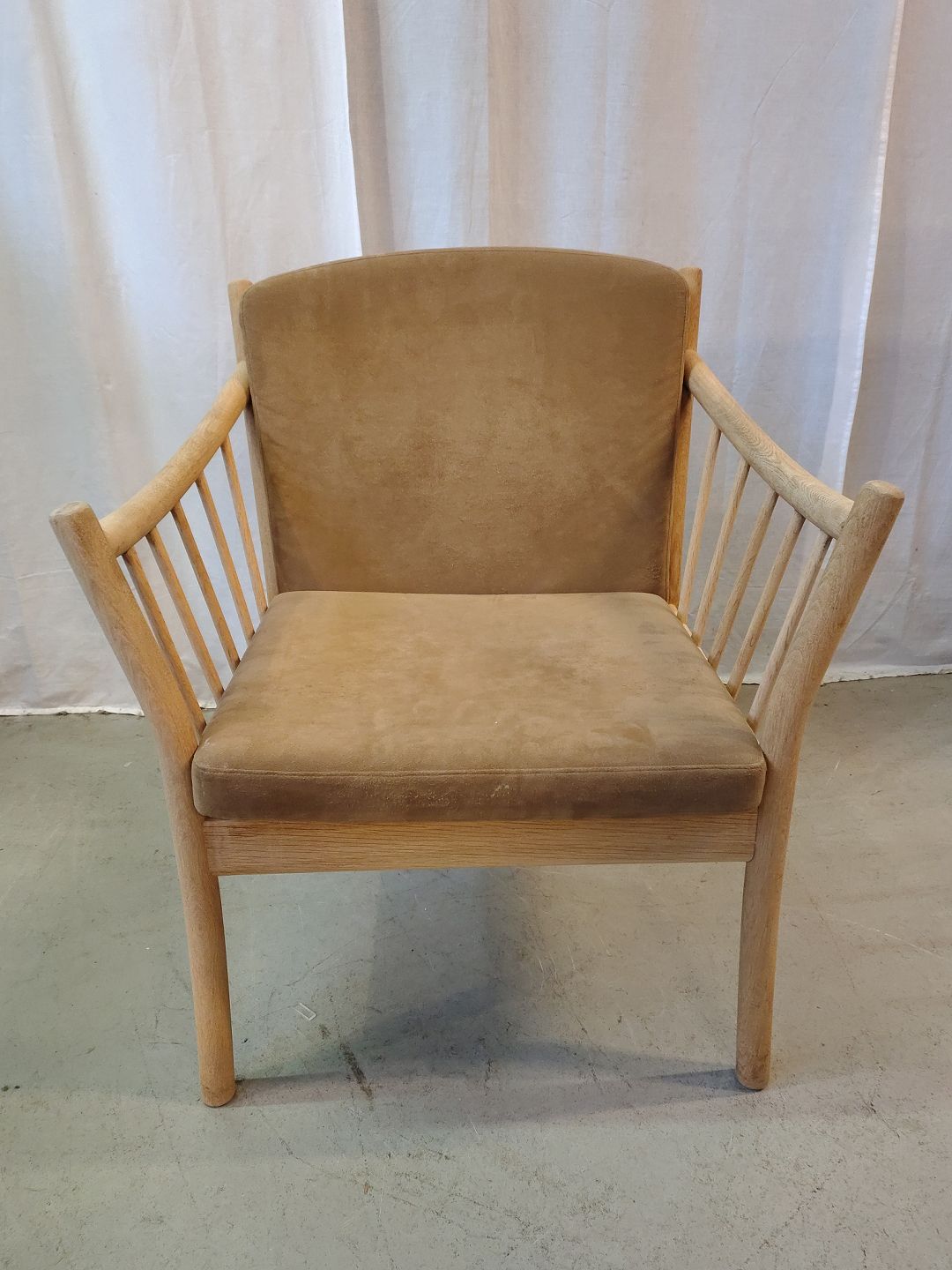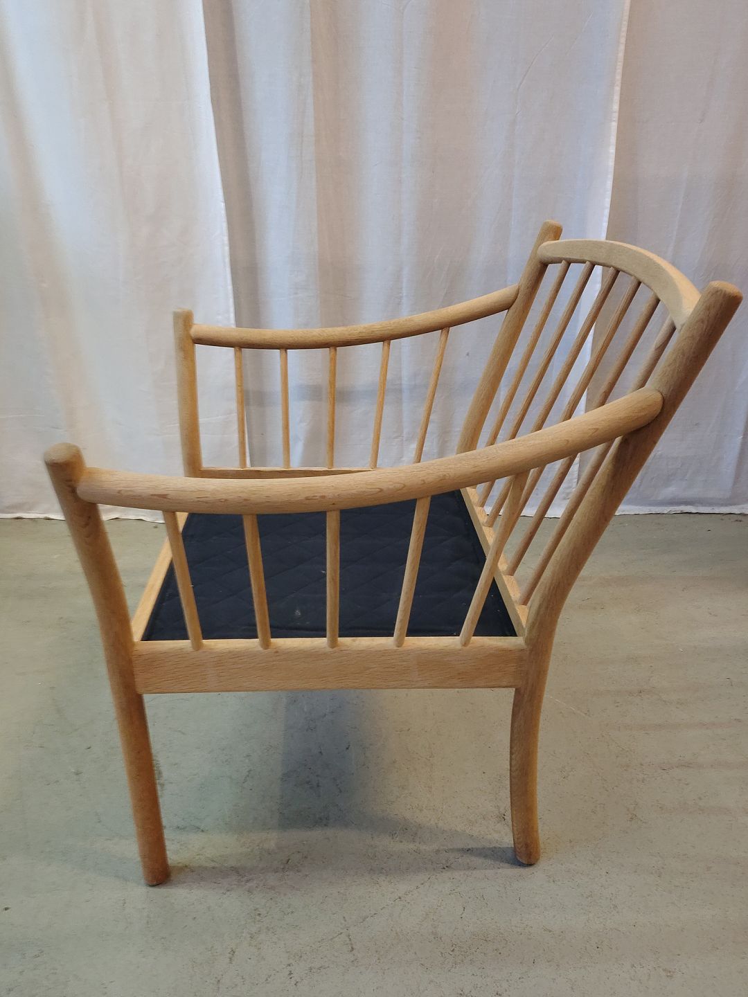 Lænestol i massivt egetræ med kunst rugskind, fra 2000erne.Den har brugsspor.