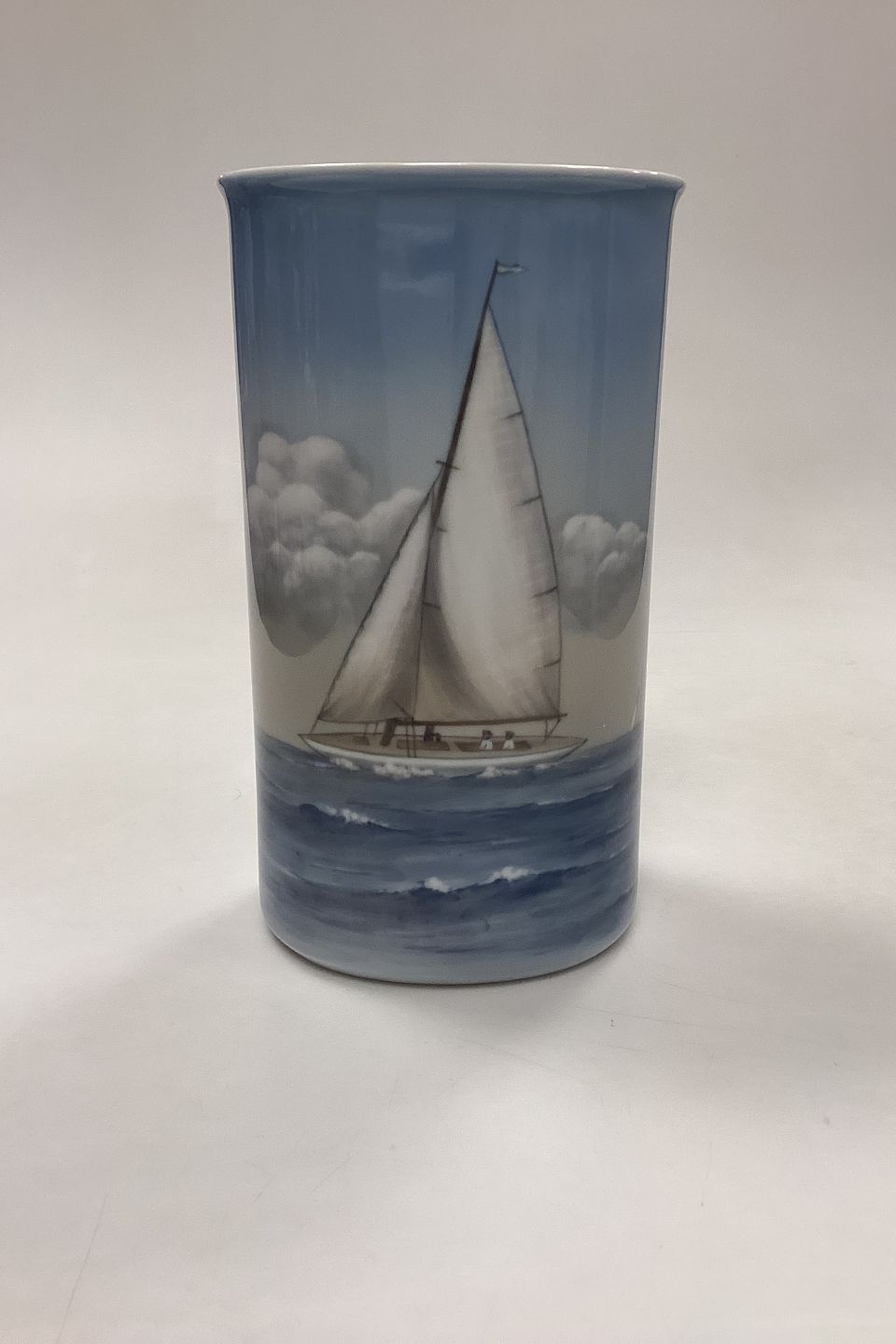 Bing og Grøndahl Art Nouveau Vase - Sejlbåd No. 450/5407. Signeret RH., se foto.Måler 21,5 cm / 8,46 in. 1. Sortering.