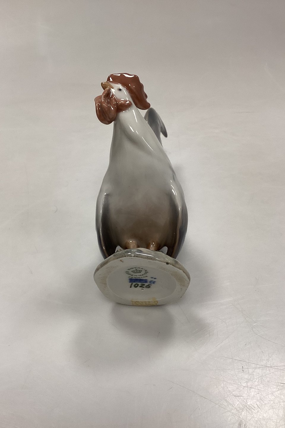 Royal Copenhagen Figur af Hane No. 1025. Designet af Chr. Thomsen.Måler 18 cm x 14 cm / 7.09 in. x 5.51 in. 1. Sortering.