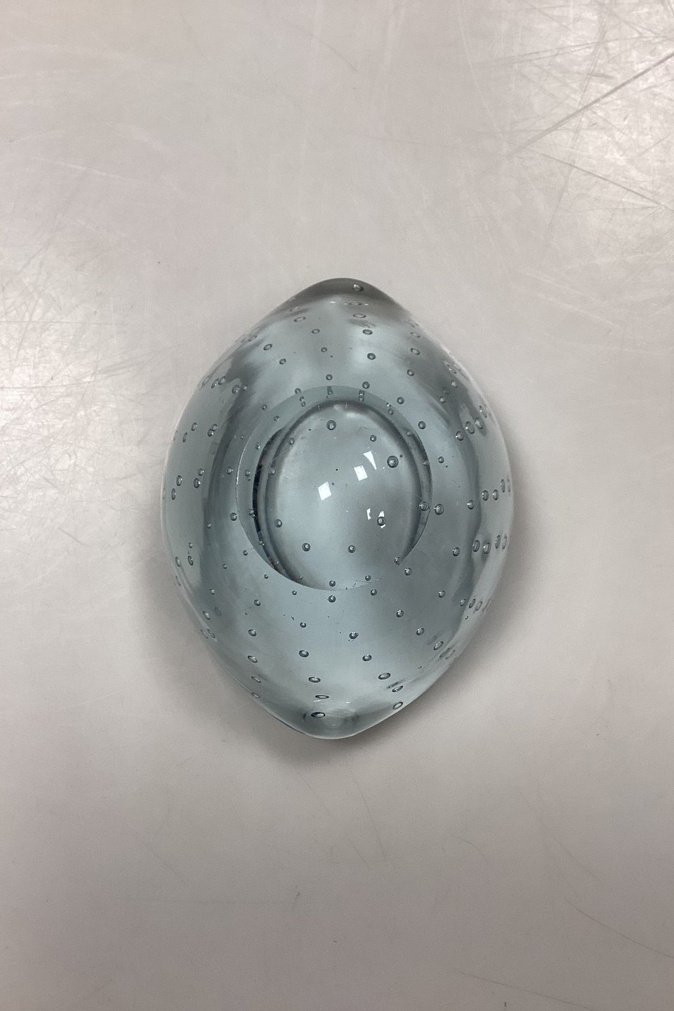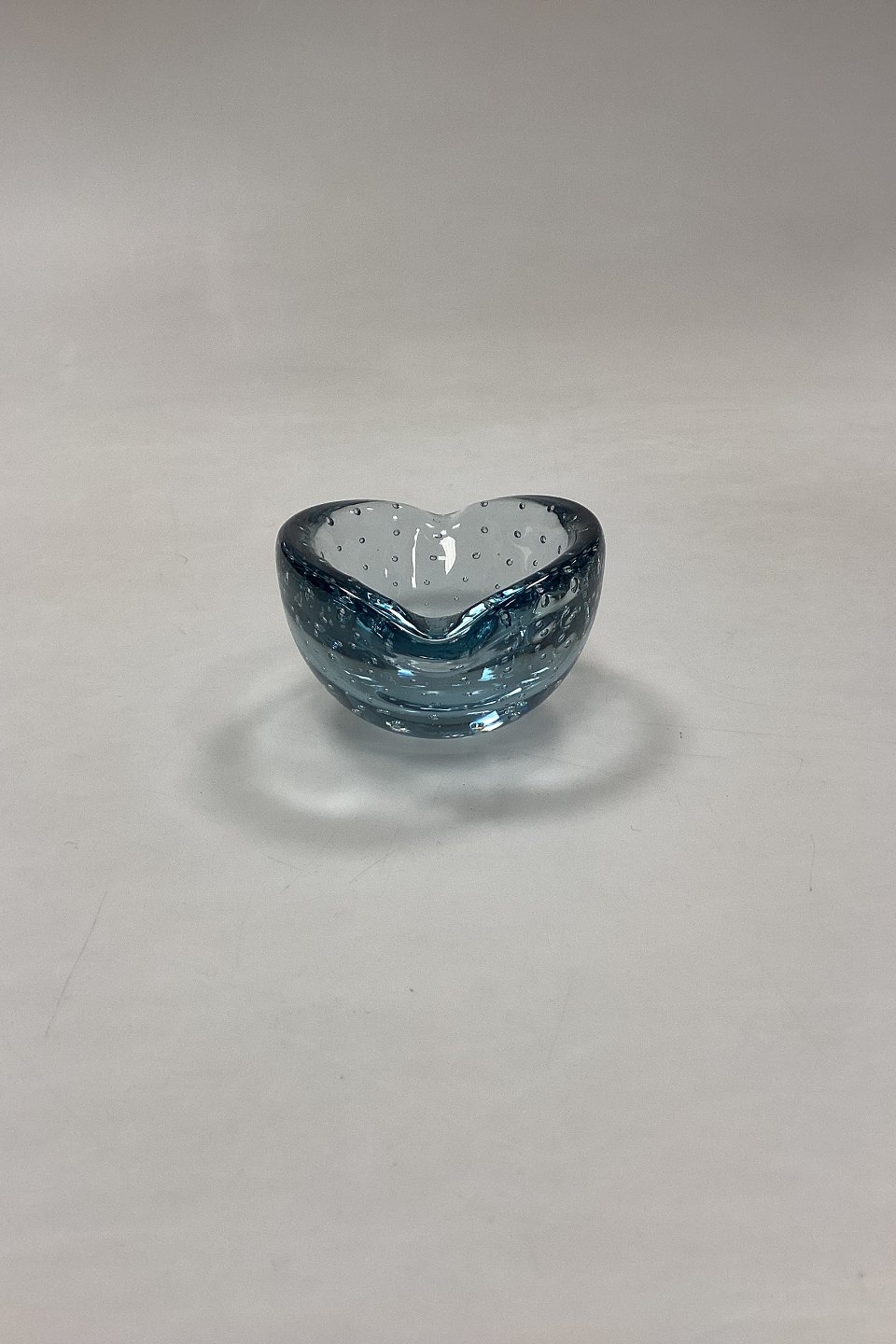 Lille Glasskål med bobler. Sandsynligvis skandinavisk fra 1950´erne. Farve: Lyseblå. Lettere brugsspor i bunden.Måler 10 cm x 4,7 cm / 3,94 in. x 1,85 in.