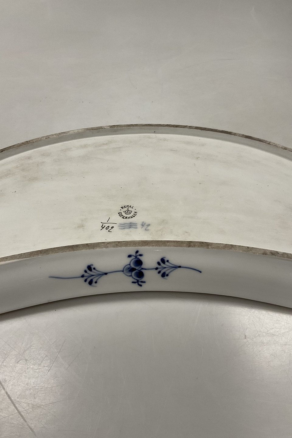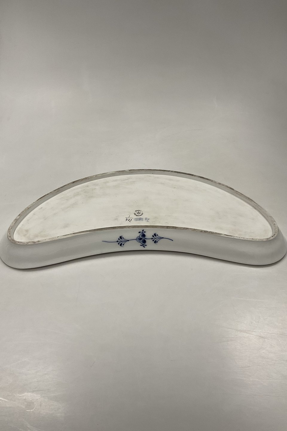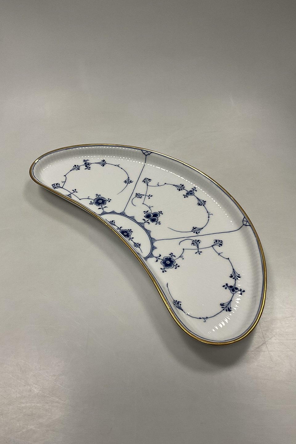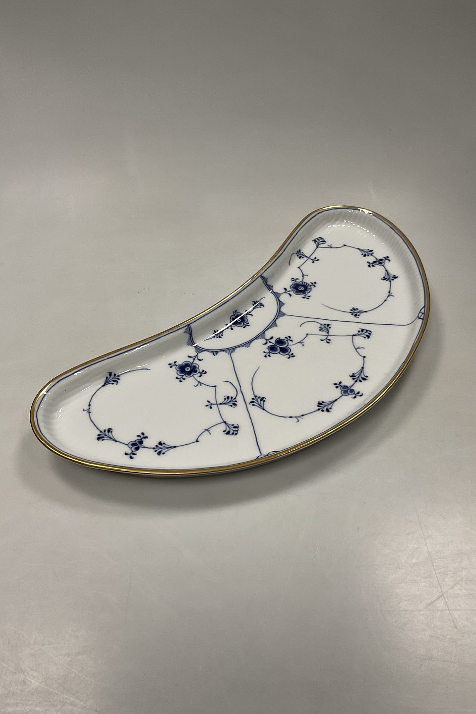 Royal Copenhagen Musselmalet Riflet Halvmåne Fad med Guld No. 402Måler 44,5cm x 18,5cm / 17.52 inch x 7.28 inch