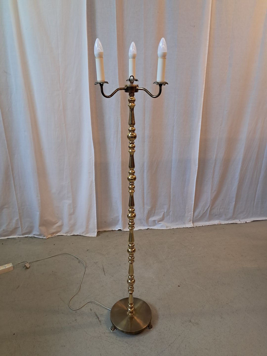 Standerlampe i messing med 3 skærme, fra 1980erne.