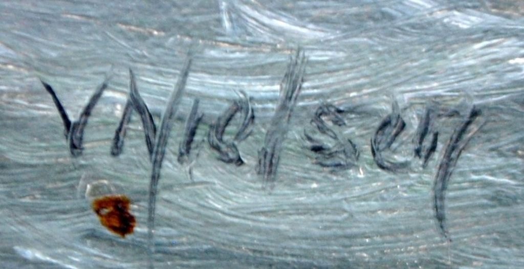 Nielsen, Verner (1910 - ) Danmark: Marine med sejlskibe. Olie på lærred. Signeret. 24 x 30 cm.Indrammet: 37,5 x 43,5 cm.