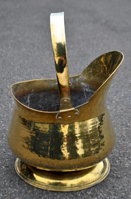 Messing kul spand, 19. årh., England. H. inkl. hank: 41 cm. Dia: 26 cm.Emne nummer: 28984
