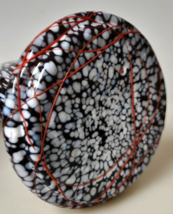 Jugend vase, ca. 1900, Tyskland. Violet glas med fod af hvidt, blåt og gråt glas. Ovenover rødt glas linie. H.: 29,5 cm.Spændende stykke!