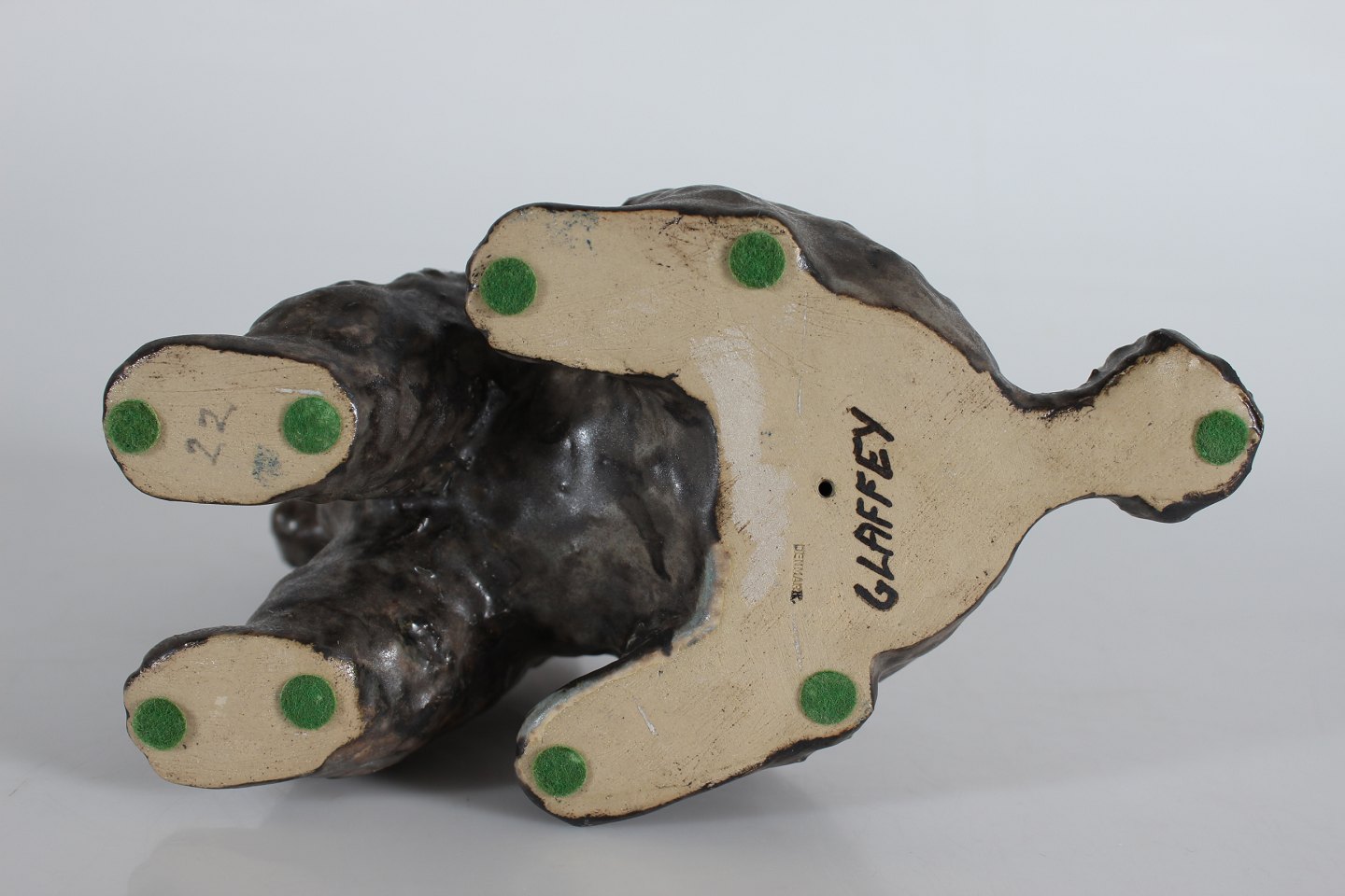 Elise Glaffey (1936-)Livagtig puddelhund af keramik dekoreret