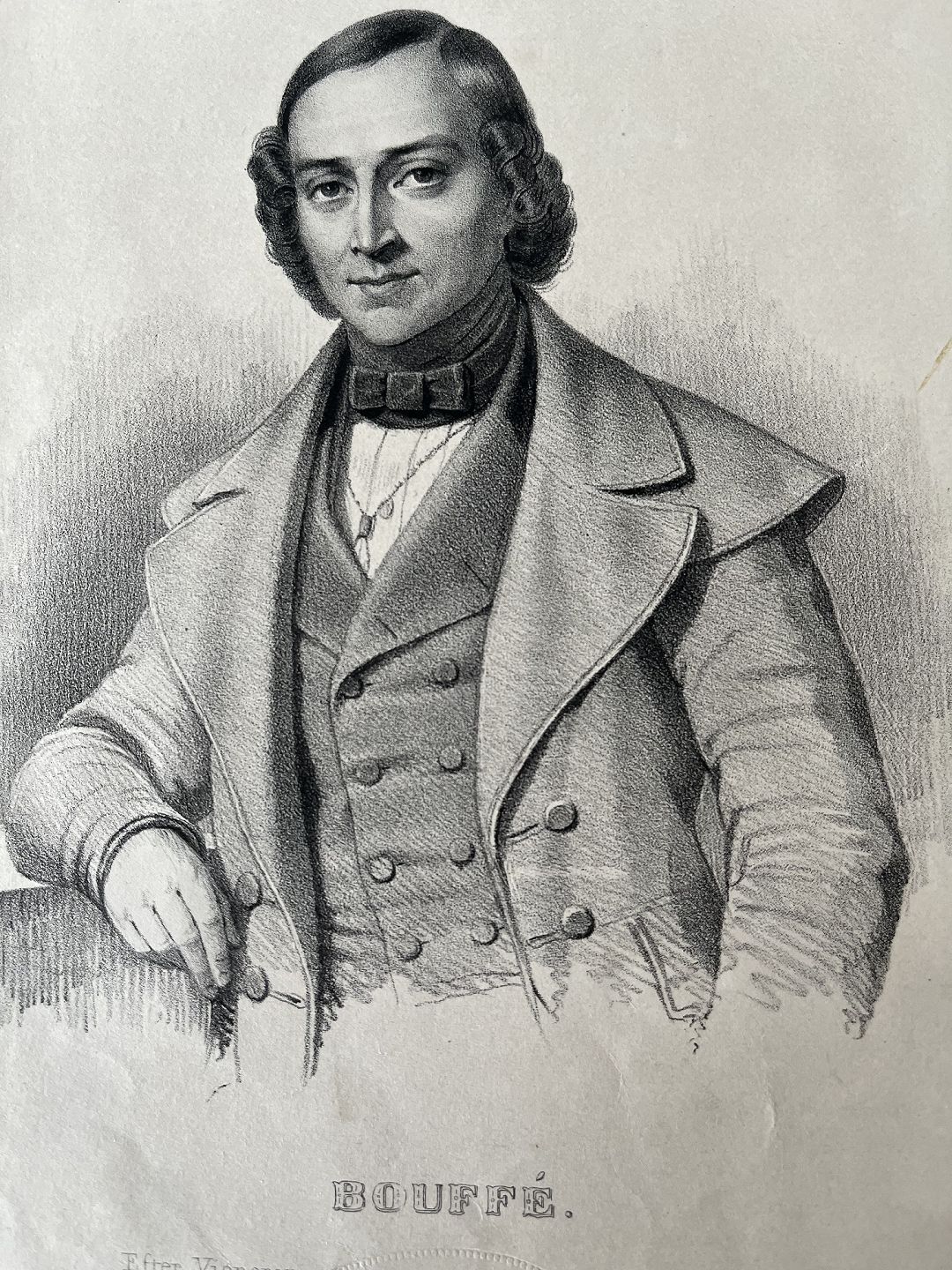 Litografi af Em. Bærentzen - Portræt af den franske skuespiller Hugues Bouffé.