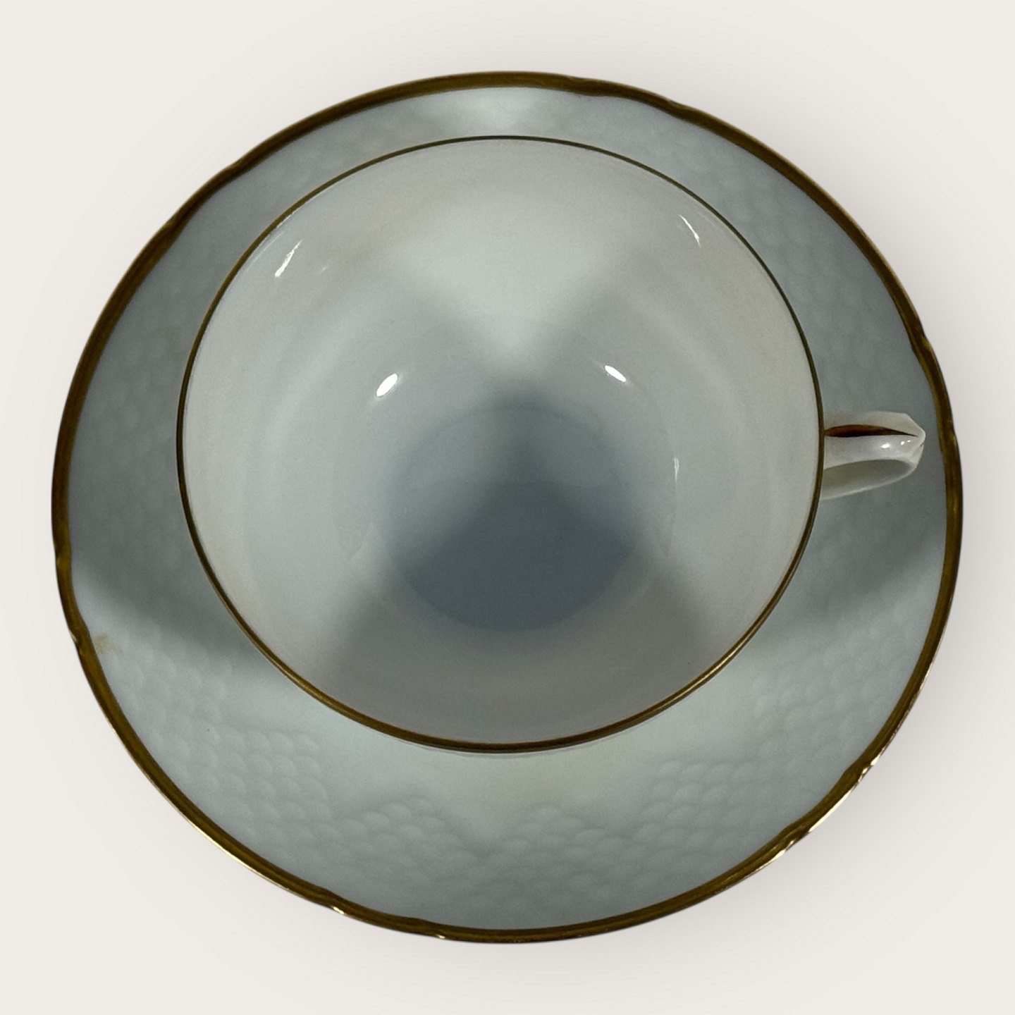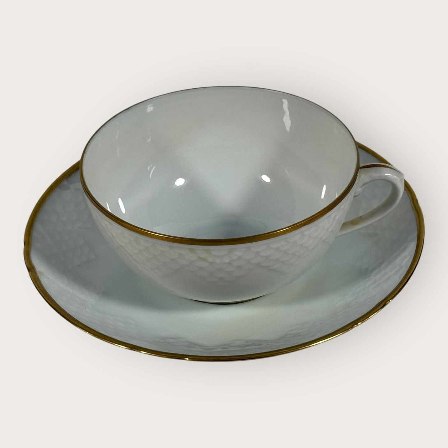 Bing & Grøndahl, Aakjær, Hvid porcelæn med guldkant, Tekop sæt #108, 5cm høj, 10cm i diameter, 1.sortering *Pæn stand*Lager: 3