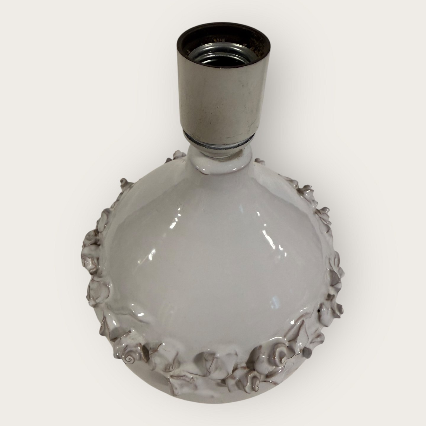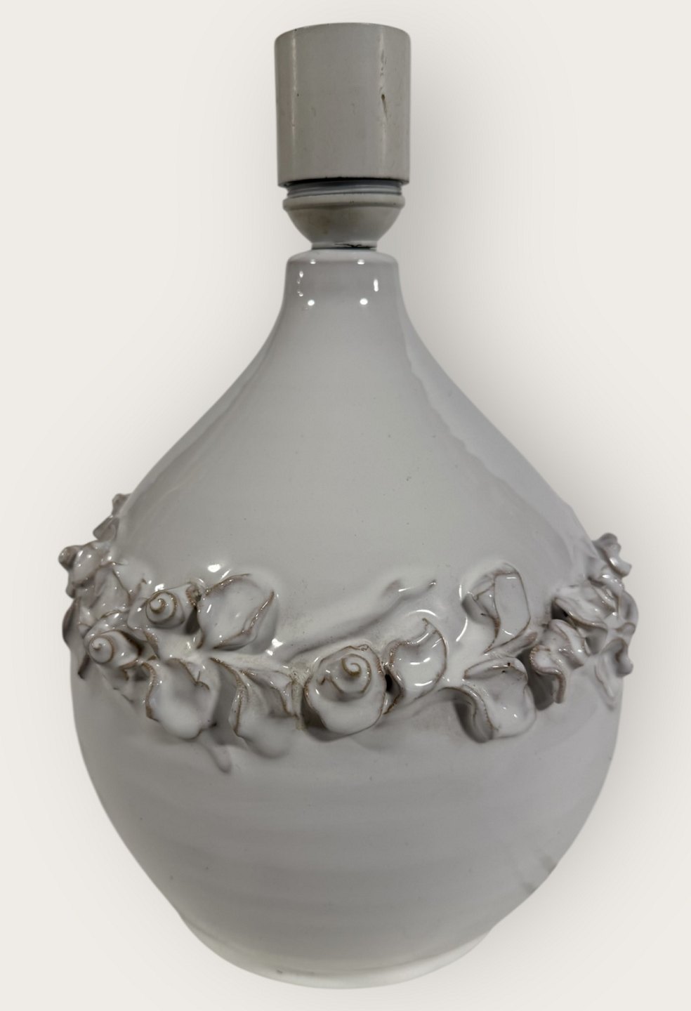 Torben Keramik, Stor hvid bordlampe med blomsterranke, højde med fatning 27,5cm, signeret Torben Danmark 175 *Fin stand*Lager: 1