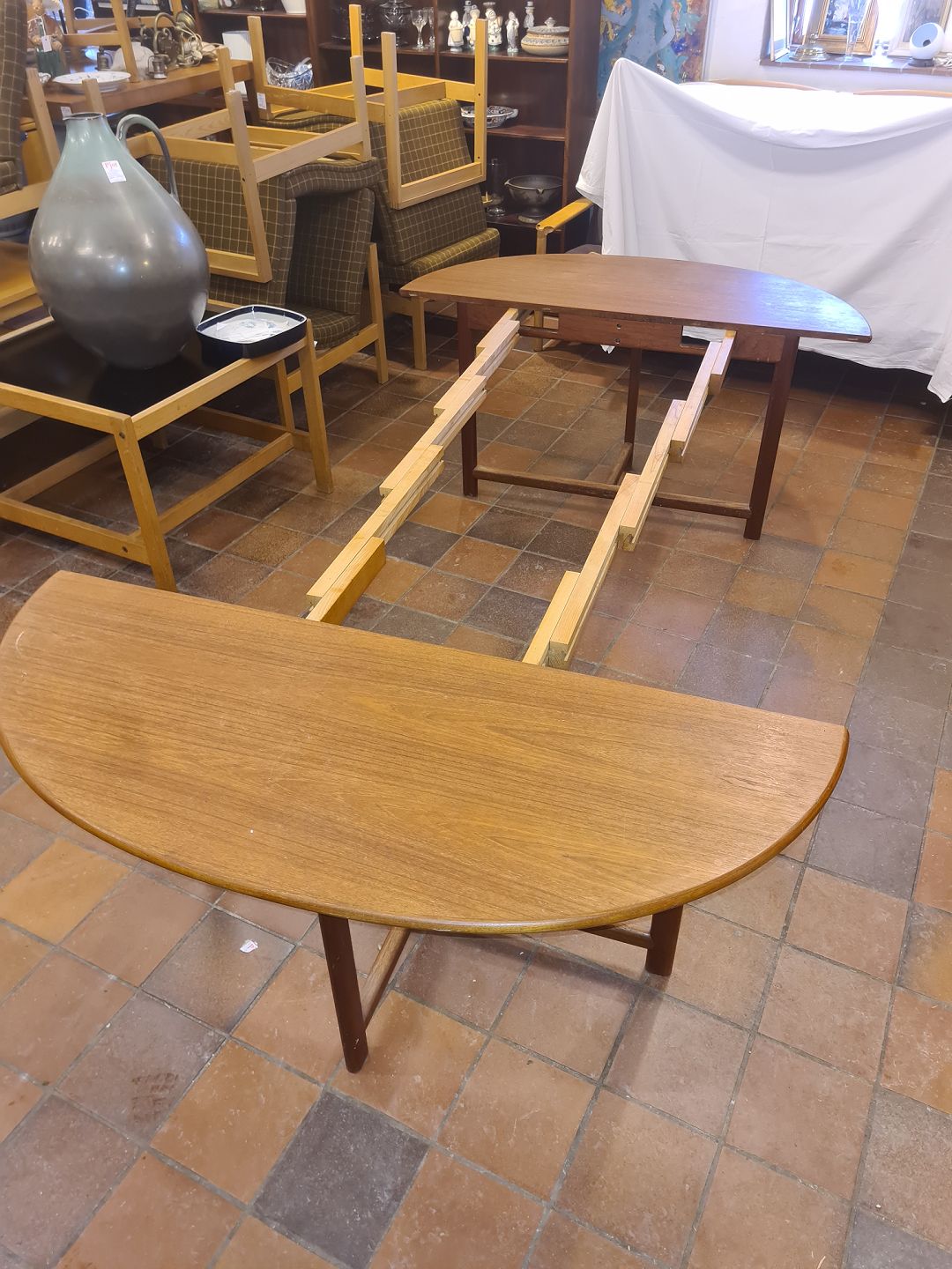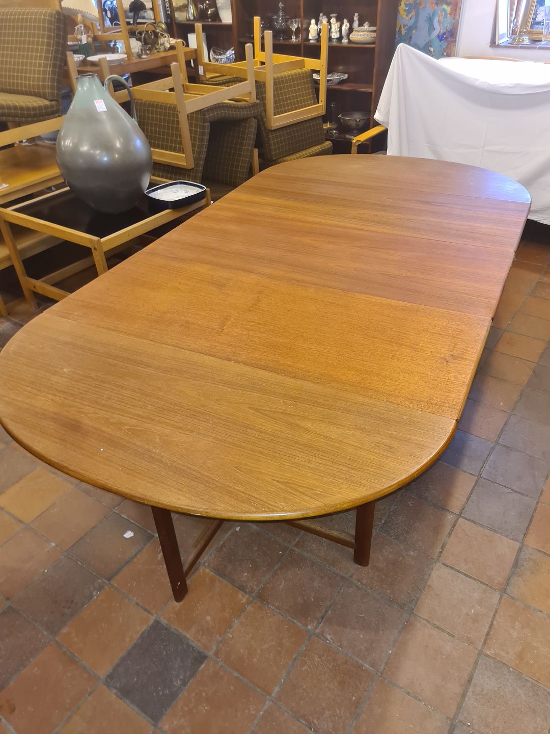 Ovalt spisebord i fineret teak m. 3 tillægsplader. Tegnet af Karl-Erik Ekselius for Vetlanda i Sverige og fremstillet ca. 1960'erne.Fremstår i pæn brugt stand, dog med afkortede ben.
