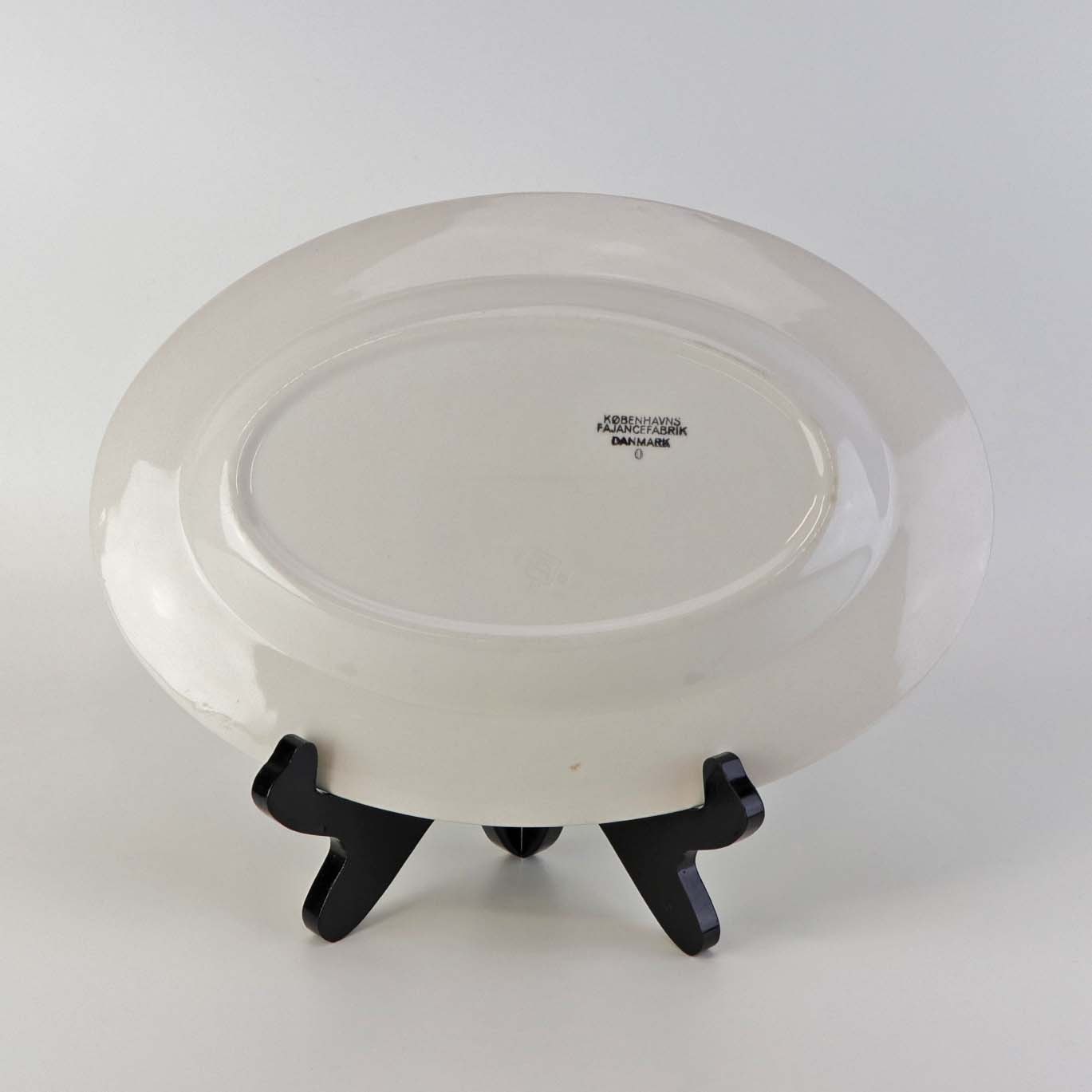 Lille ovalt fad i fajance fra Hjortestellet Convolvolus, som blev fremstillet i perioden 1930-1940Formgiver Nils Thorsson