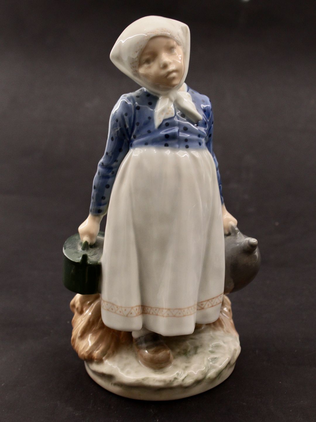 Royal Copenhagen, Bondepige 815 med frokost, dunk og tejne. Designet af Christian Thomsen. H. 21,5 cm. emne nr. 631518 Udstiller