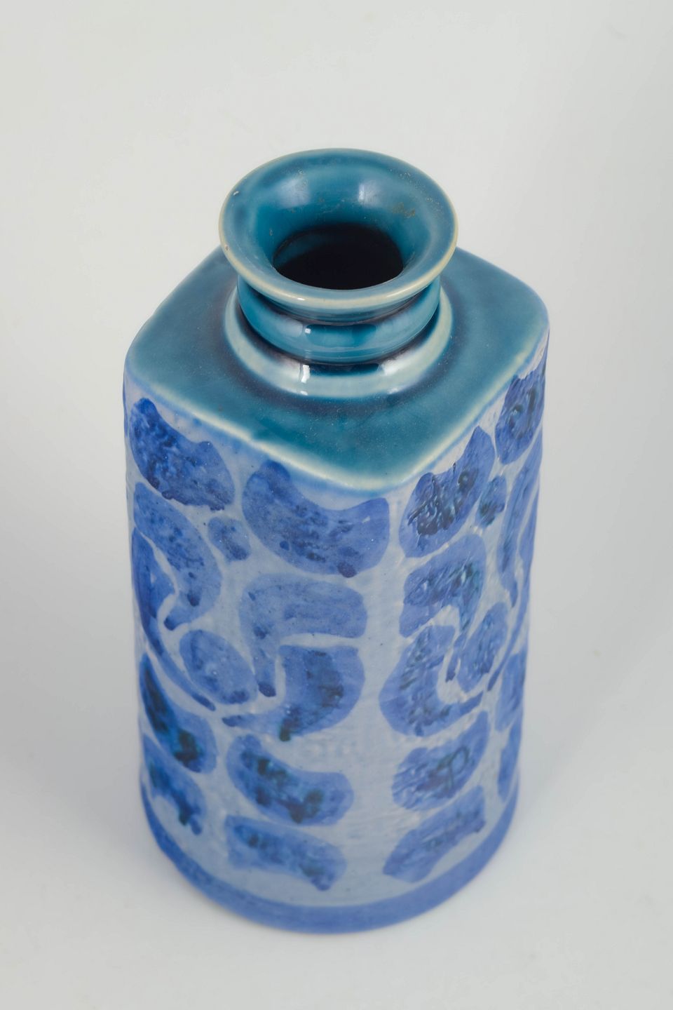 Göran Andersson 1936–2014 var en svensk keramiker og designer, der arbejdede for Upsala Verkstad i 1960’erne. Han er kendt for sit stringente formsprog kombineret med grafisk stærke, håndmalede dekorationer, ofte i klare blå og grønne farver. Hans arbejder afspejler periodens modernistiske idealer med fokus på rytme, gentagelse og balanceret ornamentik og udgør et markant kapitel i svensk studiokeramik fra efterkrigstiden.