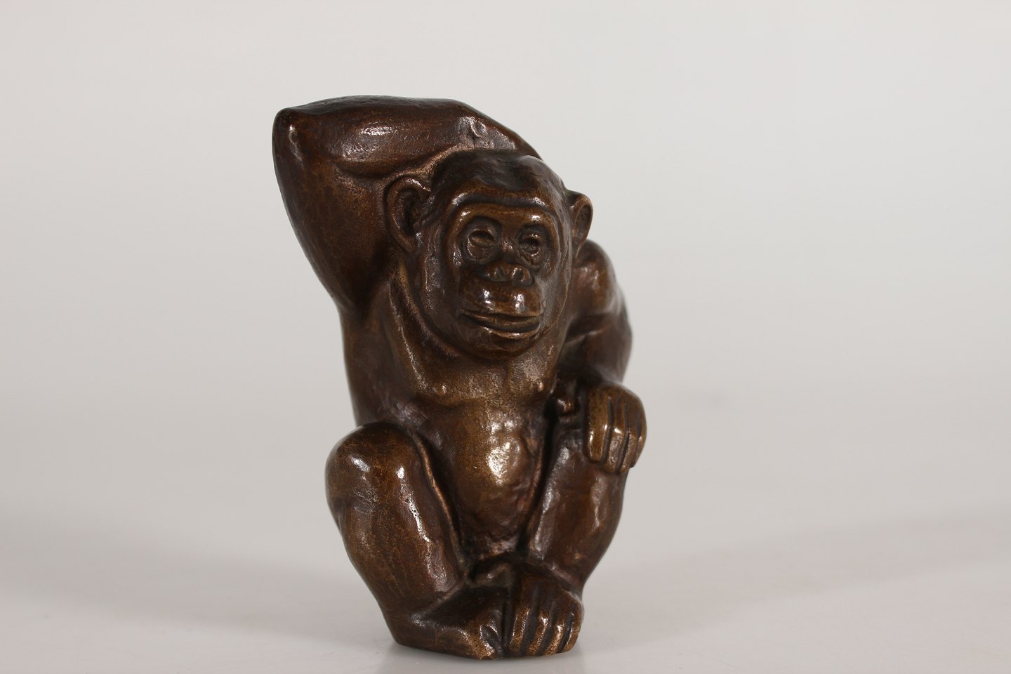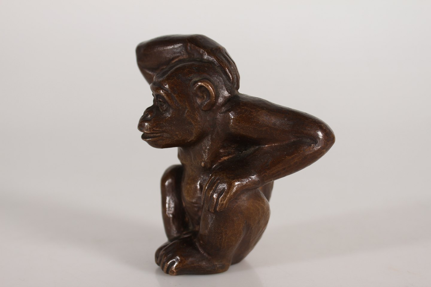 Bronzefigur af siddende chimpanse