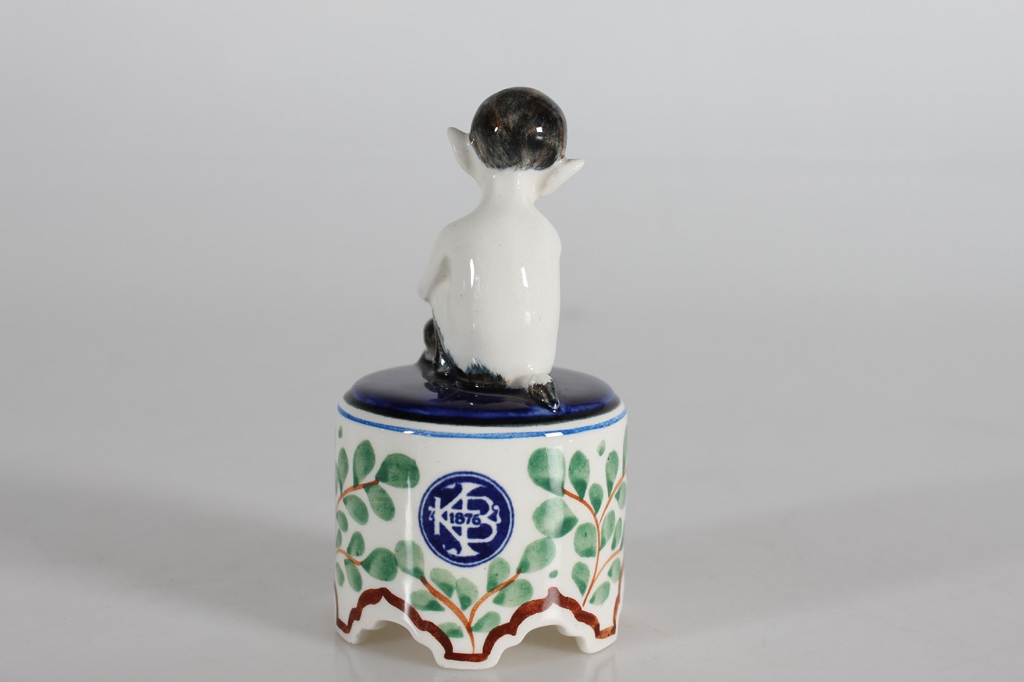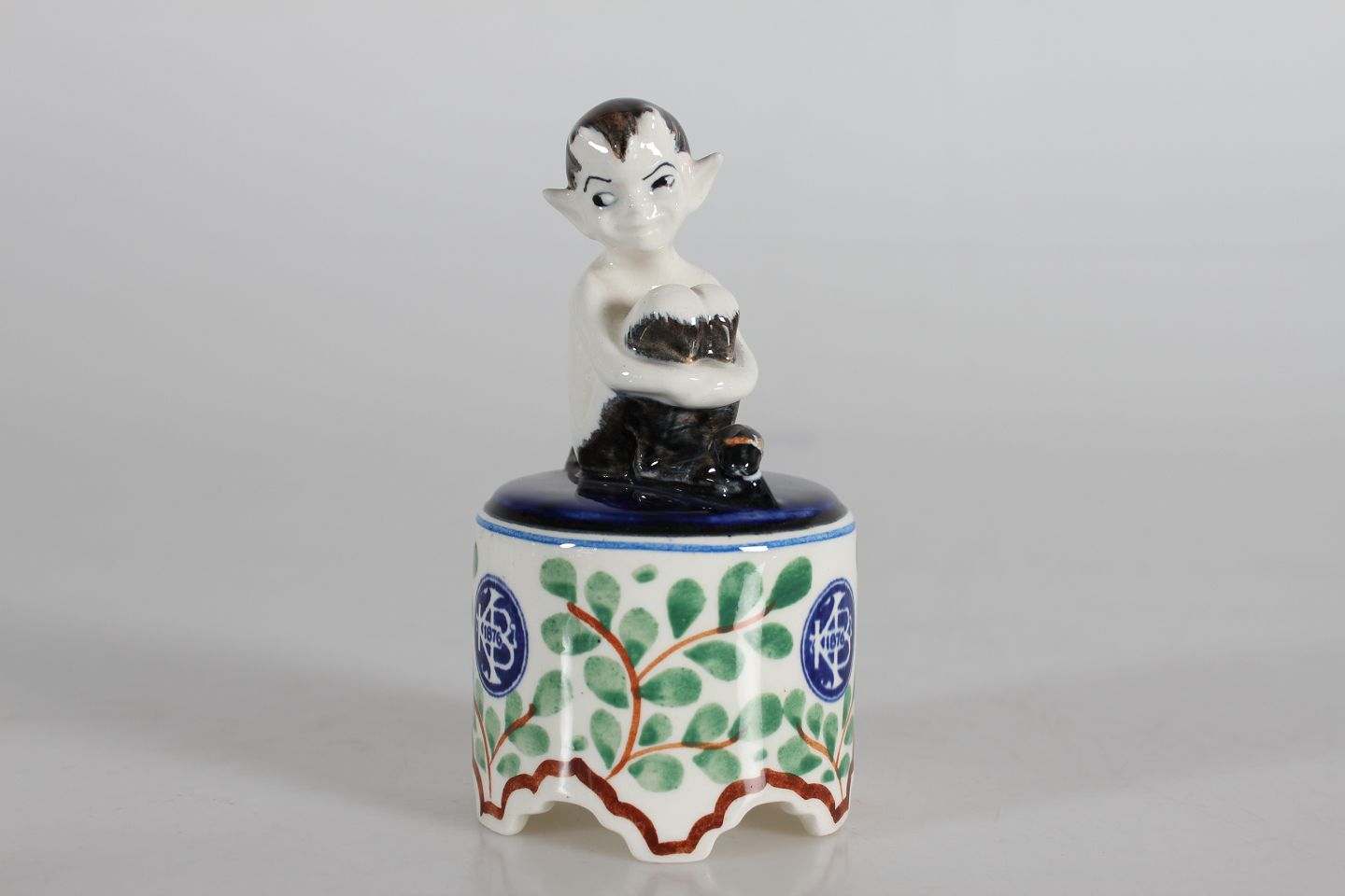 Aluminia FajanceLille figur af Faun model nr. 917/786 på rund opsats