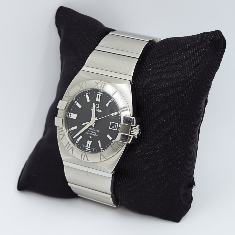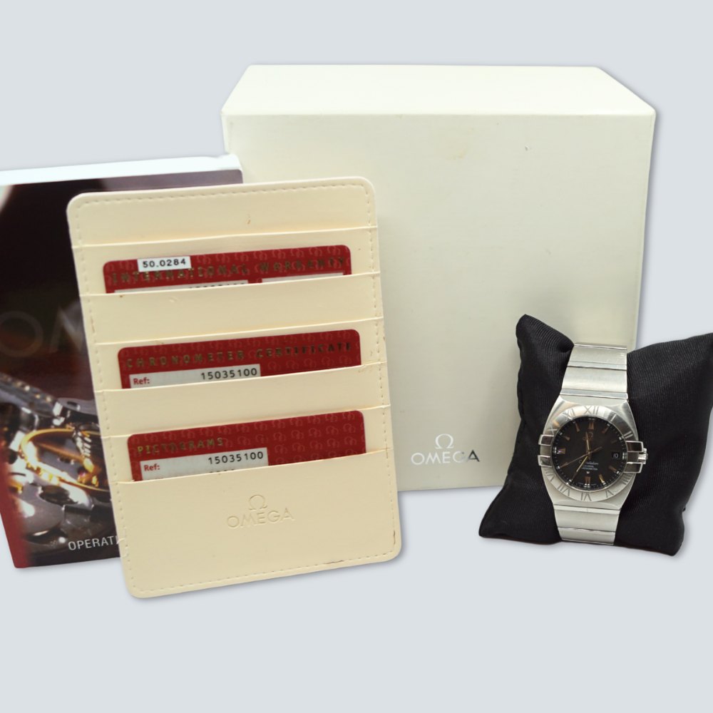 Omega armbåndsur, model Constellation Double Eagle, med sort urskive og stål rem. Co-axial chronometer. Ref. 15035100. Cal: 2500. Automatic. Omega herreur, købt fra ny d. 12/09/07. Diameter 42 mm. Med original boks og papirer. Ekstra led medfølger.Kontakt os gerne,