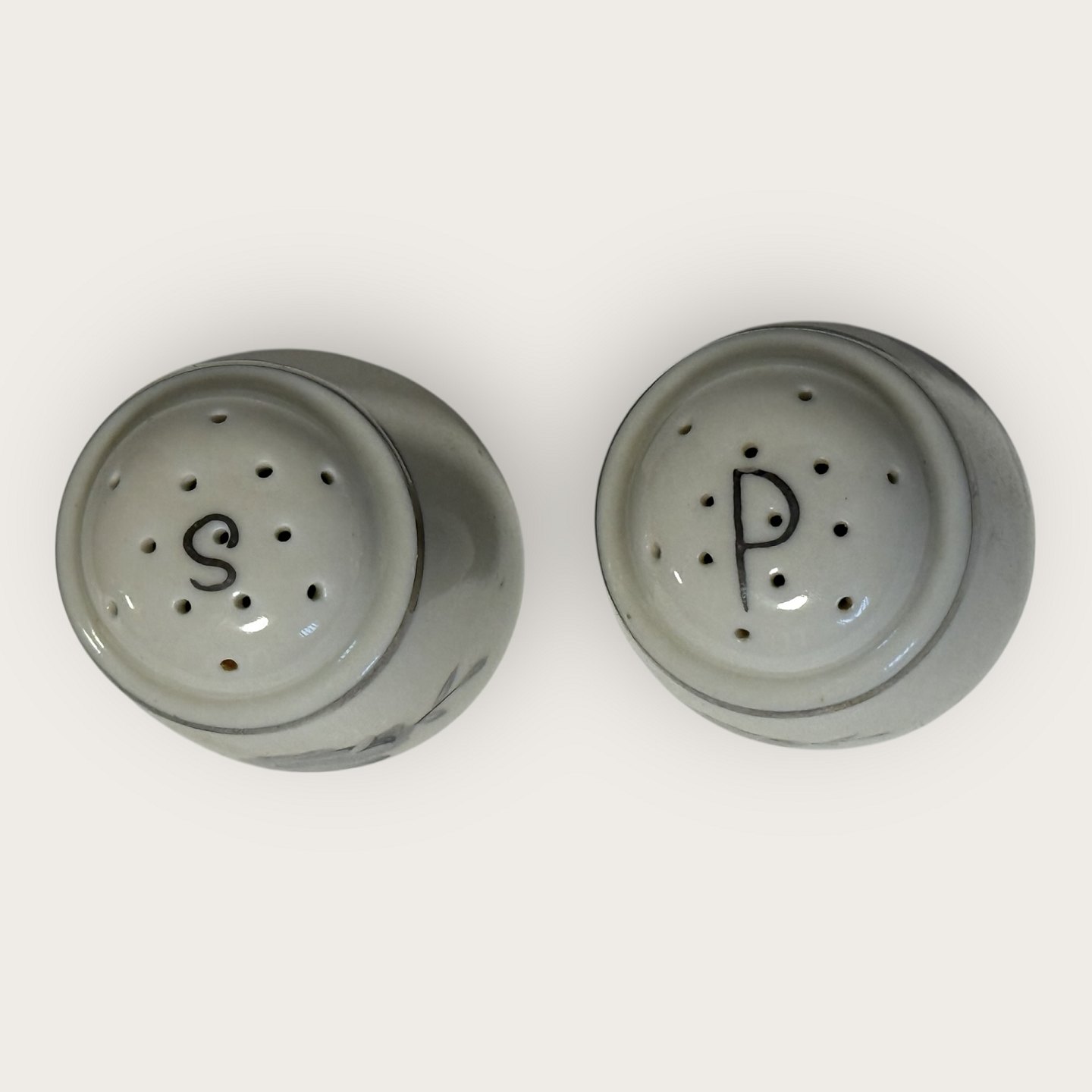Sort rose, med Plantin kant, KPM, Lyngby, Salt og peber sæt, højde 5,5cm *Pæn stand*