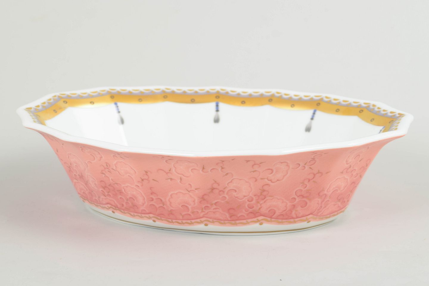 Royal Copenhagen, Fairytale skål.Lav skål i hvidt porcelæn dekoreret med Fairytale-mønster i bløde rosa toner med fine ornamentale detaljer. Fremstillet i perioden 1992–1999 i 1. sortering. Model 579.