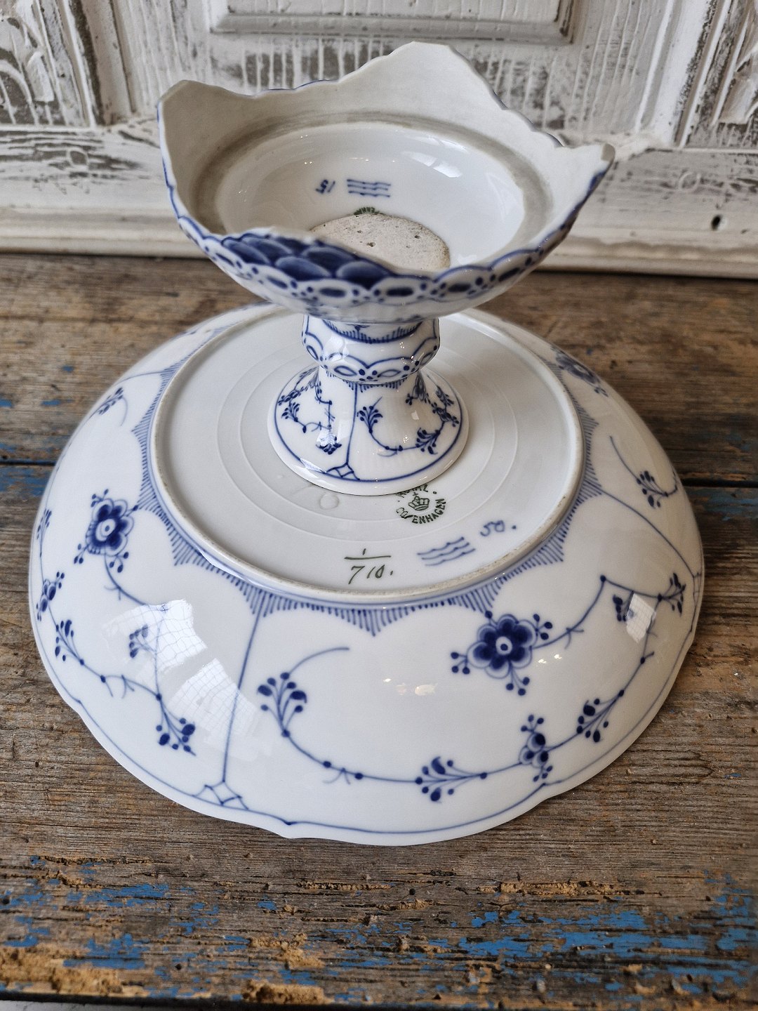 Royal Copenhagen Musselmalet halvblonde opsats med bølget kantNo. 710, 1. sortering