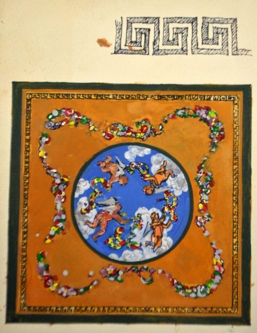 Thieme, Alexander Georgivitj (1953 - 2003) Rusland/Danmark: Udkast til loft, 1994. Samarbejde med Piotr Reichet. Akvarel på papir. H: 22,5 cm. B: 18,5 cm.