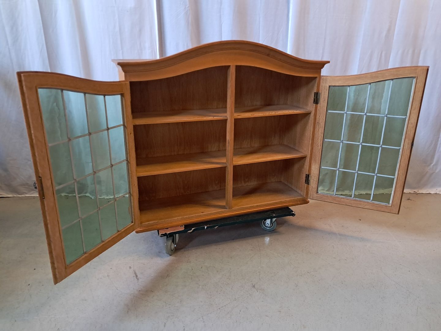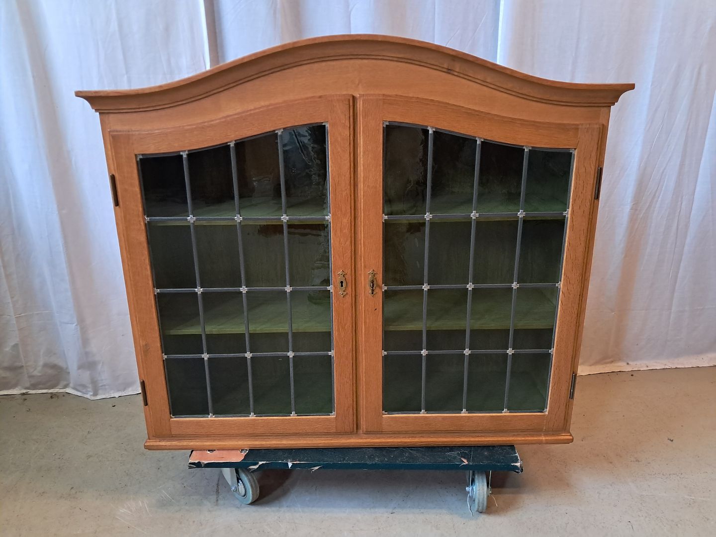 Skab i fineret egetræ, fra 1980erne.Det har brugsspor og kommer fra et ryger hjem.