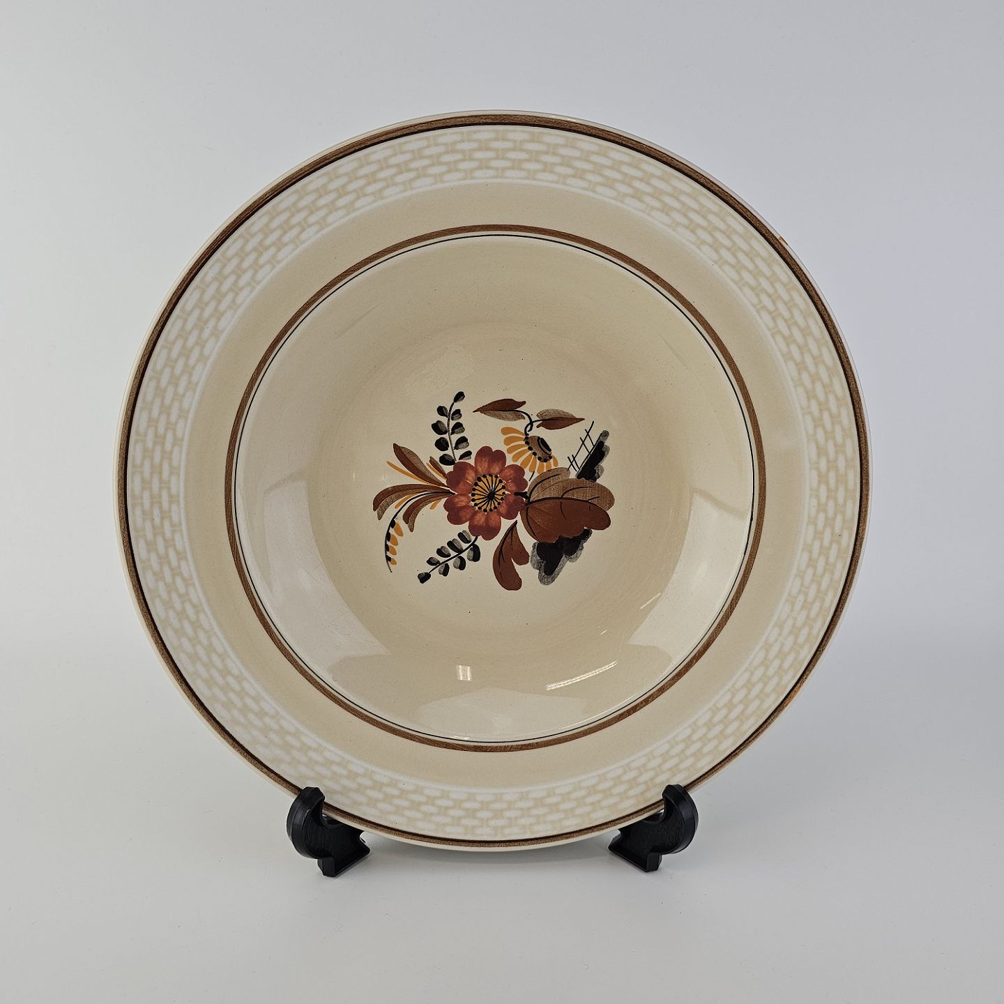 Knud er cremefarvet fajance dekoreret med flettet kant og brune og orange blomster. Stellet blev produceret i år 1934-1963.