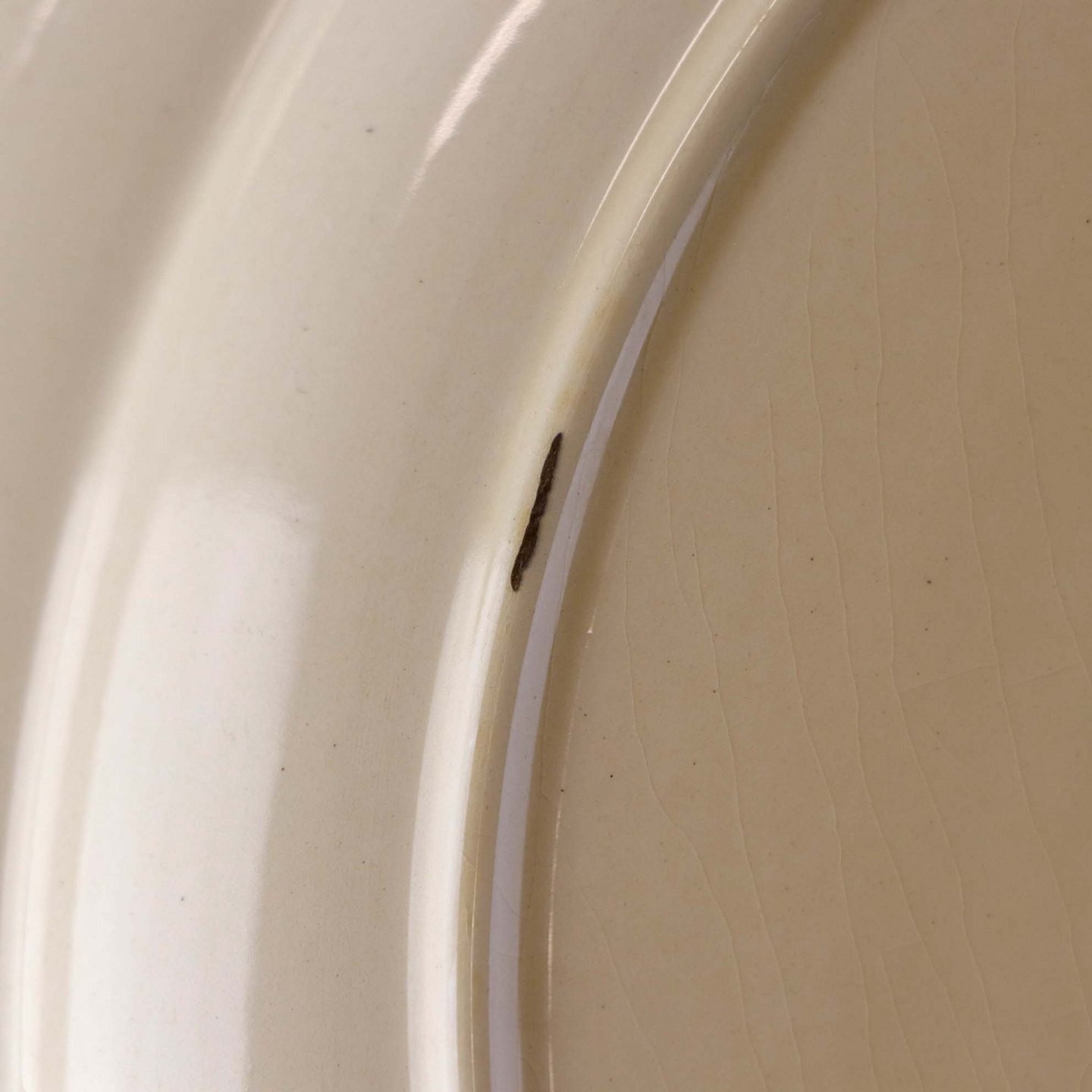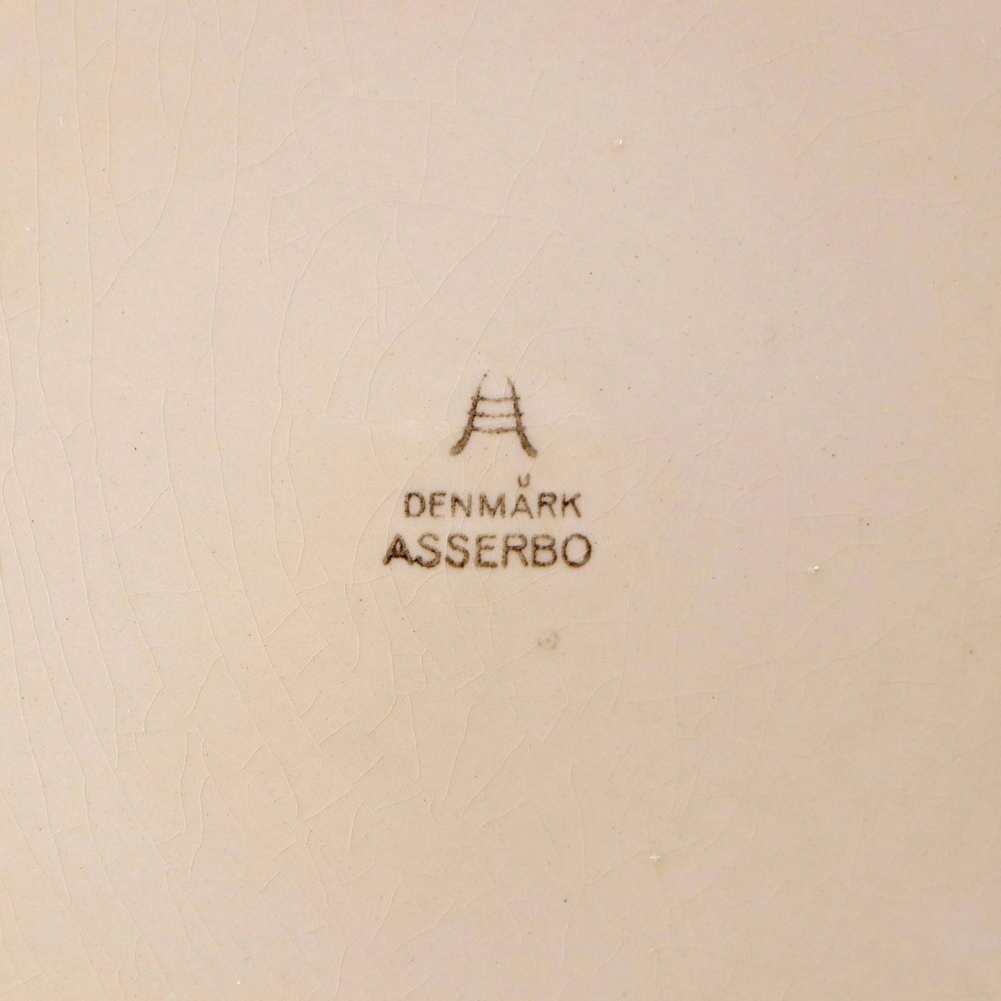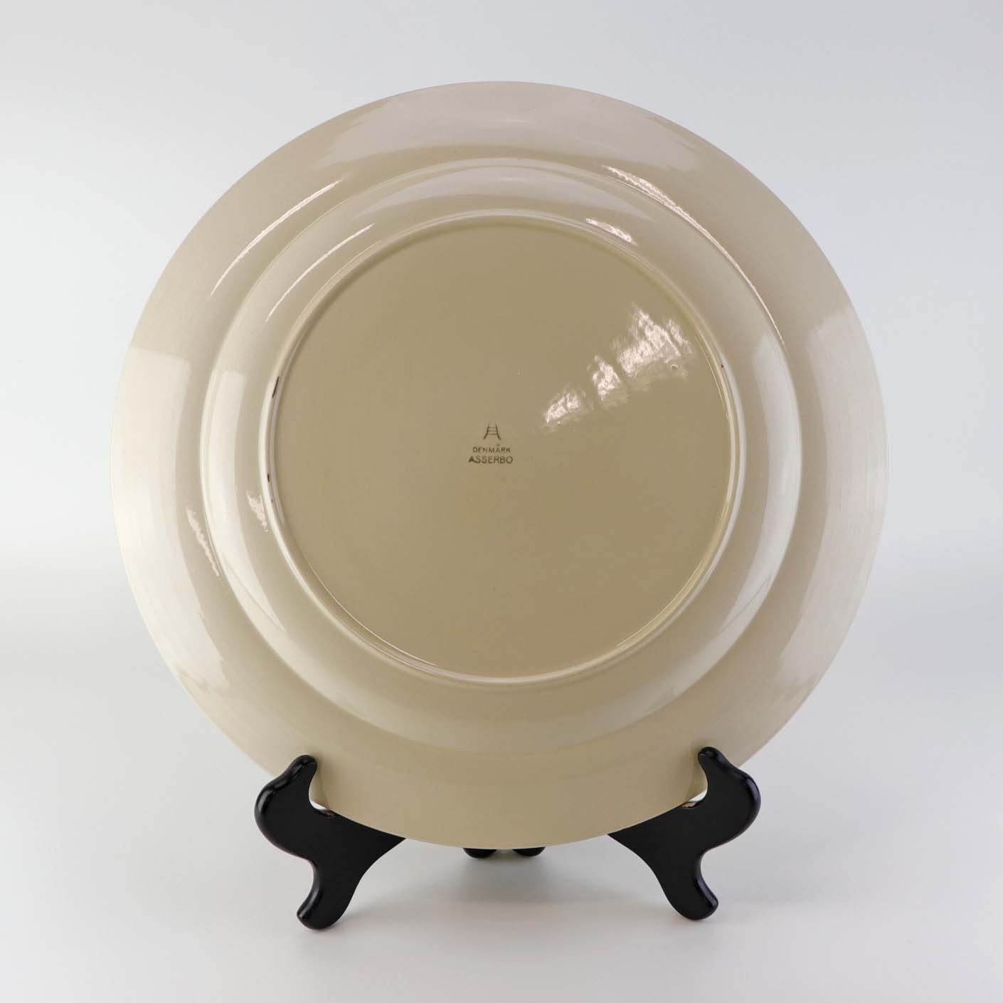Stort rundt serveringsfad i fajance fra stellet Asserbo fremstillet i perioden 1933-1965Formgiver Nils Thorsson