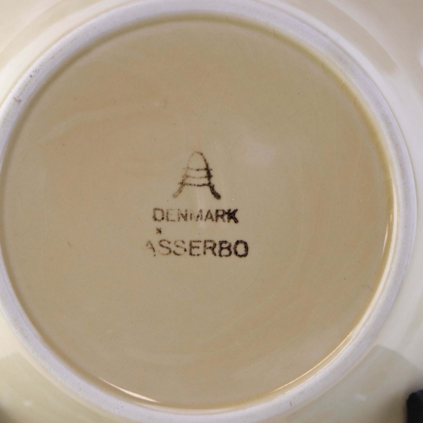Askebæger i fajance fra stellet Asserbo fremstillet i perioden 1933-1965Formgiver Nils Thorsson