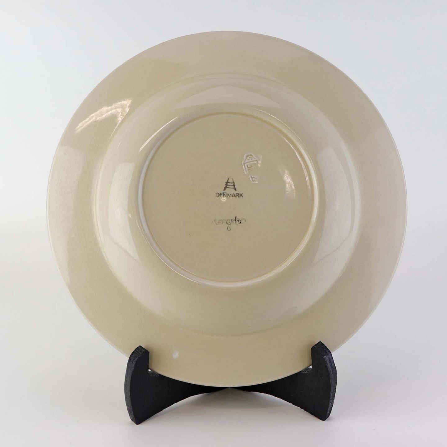 Lille dyb tallerken i fajance fra stellet Asserbo fremstillet i perioden 1933-1965Formgiver Nils Thorsson