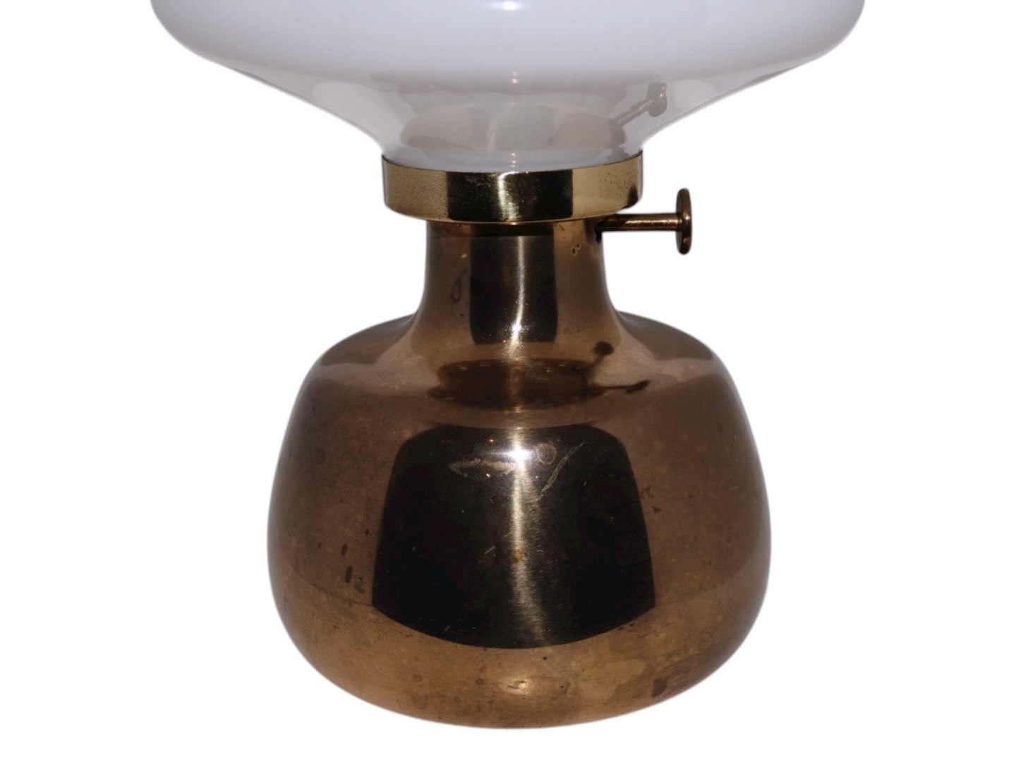 Henning KoppelPetronella petroleumslampe med hvid opalglas skærm fra Holmegaard.