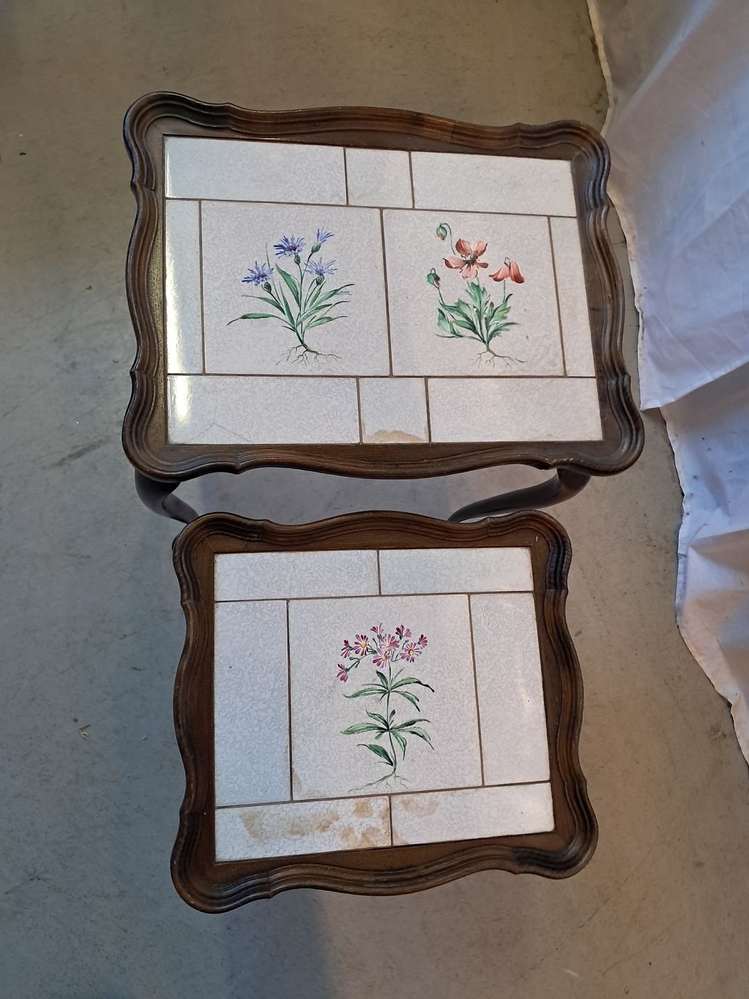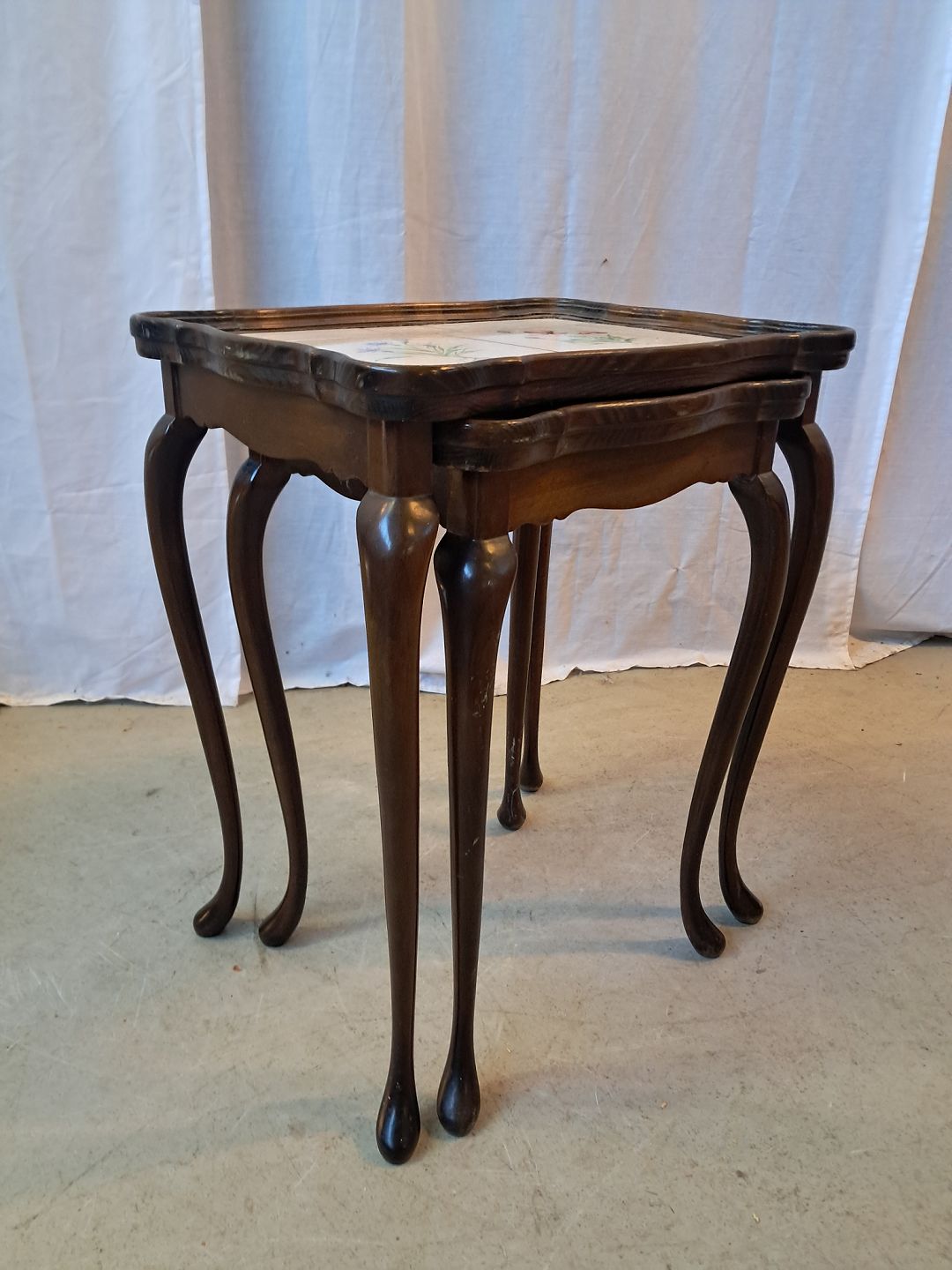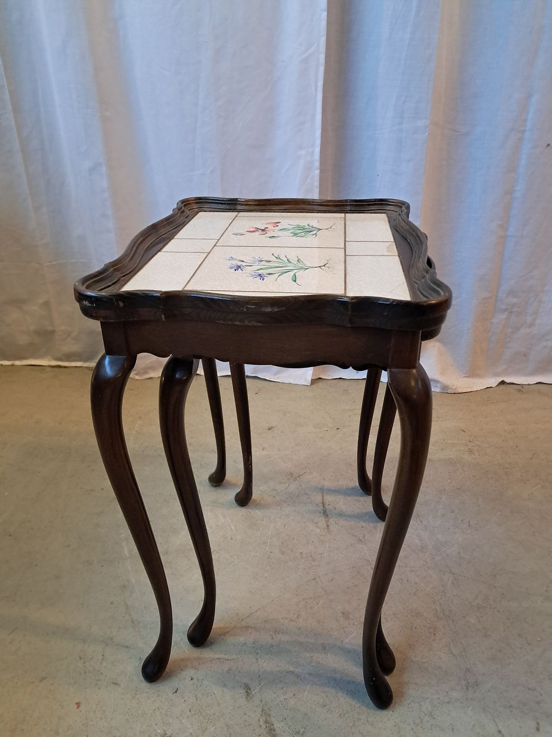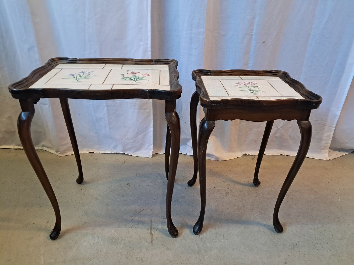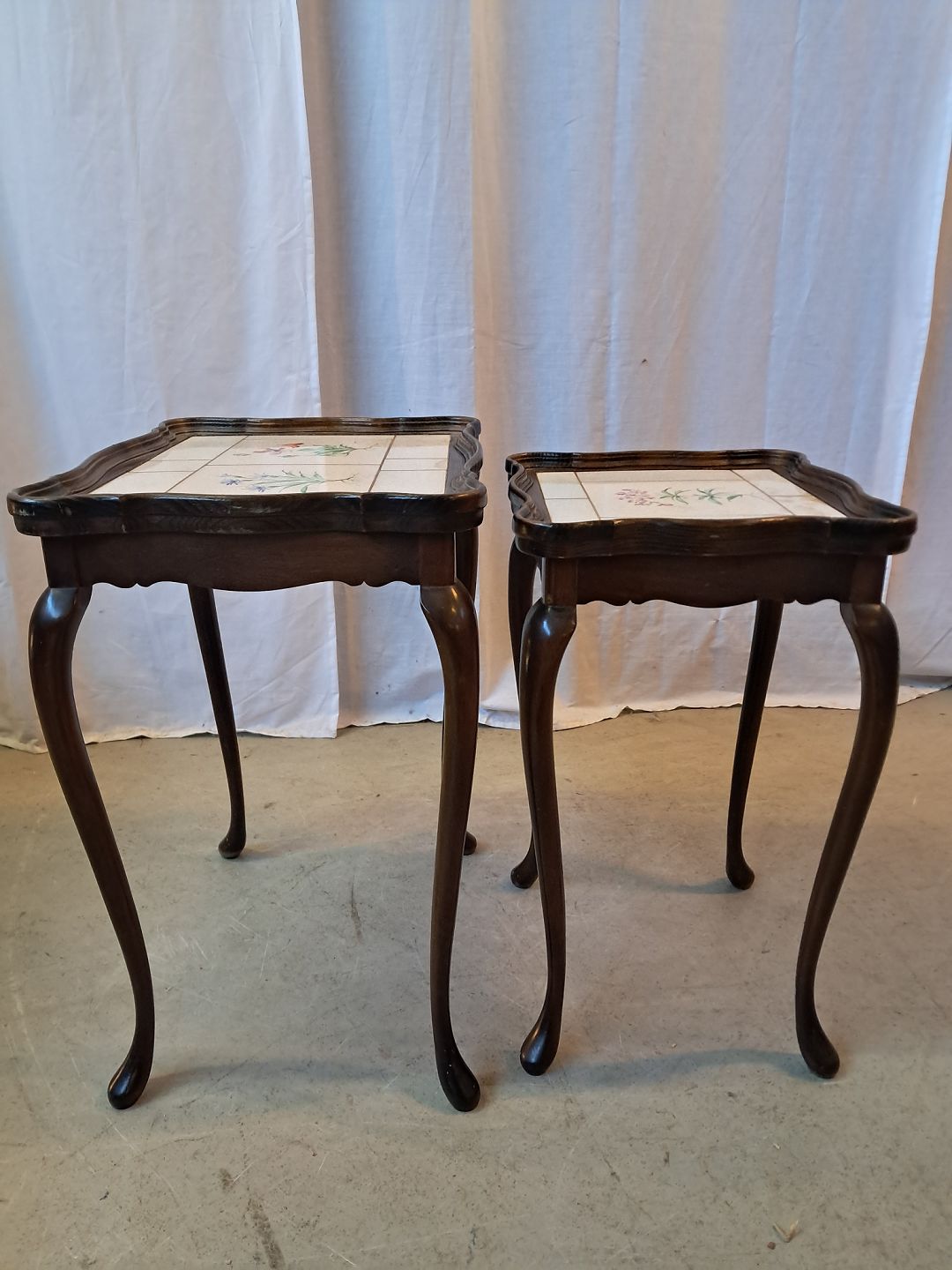 2 Borde i bøgetræ med kakler, fra 1980erne.De har brugsspor.