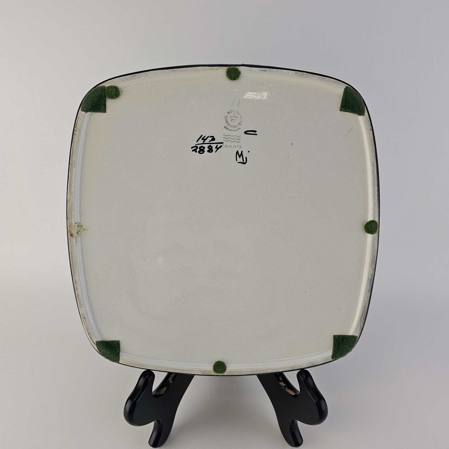 Firkantet fad fra serien Tenera i fajance med dekoration af en fugl i blå nuancerNr. 143/2884