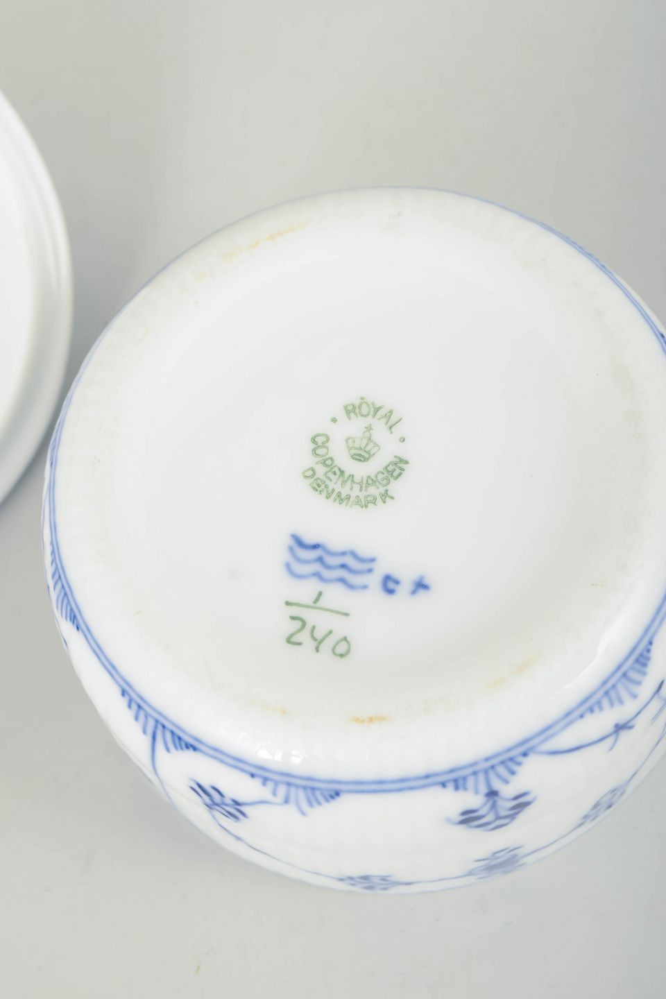 Royal Copenhagen Musselmalet riflet, lågskål.Lågskål i håndmalet porcelæn fra Musselmalet riflet med klassisk underglasurdekoration i koboltblå, riflede felter.