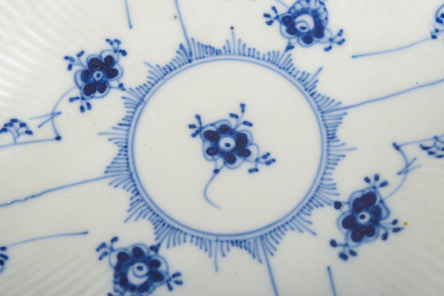 Royal Copenhagen blev grundlagt i 1775 i København under kongelig bevilling. Fabrikken er internationalt anerkendt for sit håndmalede porcelæn og sit høje kunstneriske niveau. Musselmalet Halvblonde er en variation af det klassiske Musselmalet stel og kombinerer riflede flader med en dekorativ blondekant, udført med stor håndværksmæssig præcision.