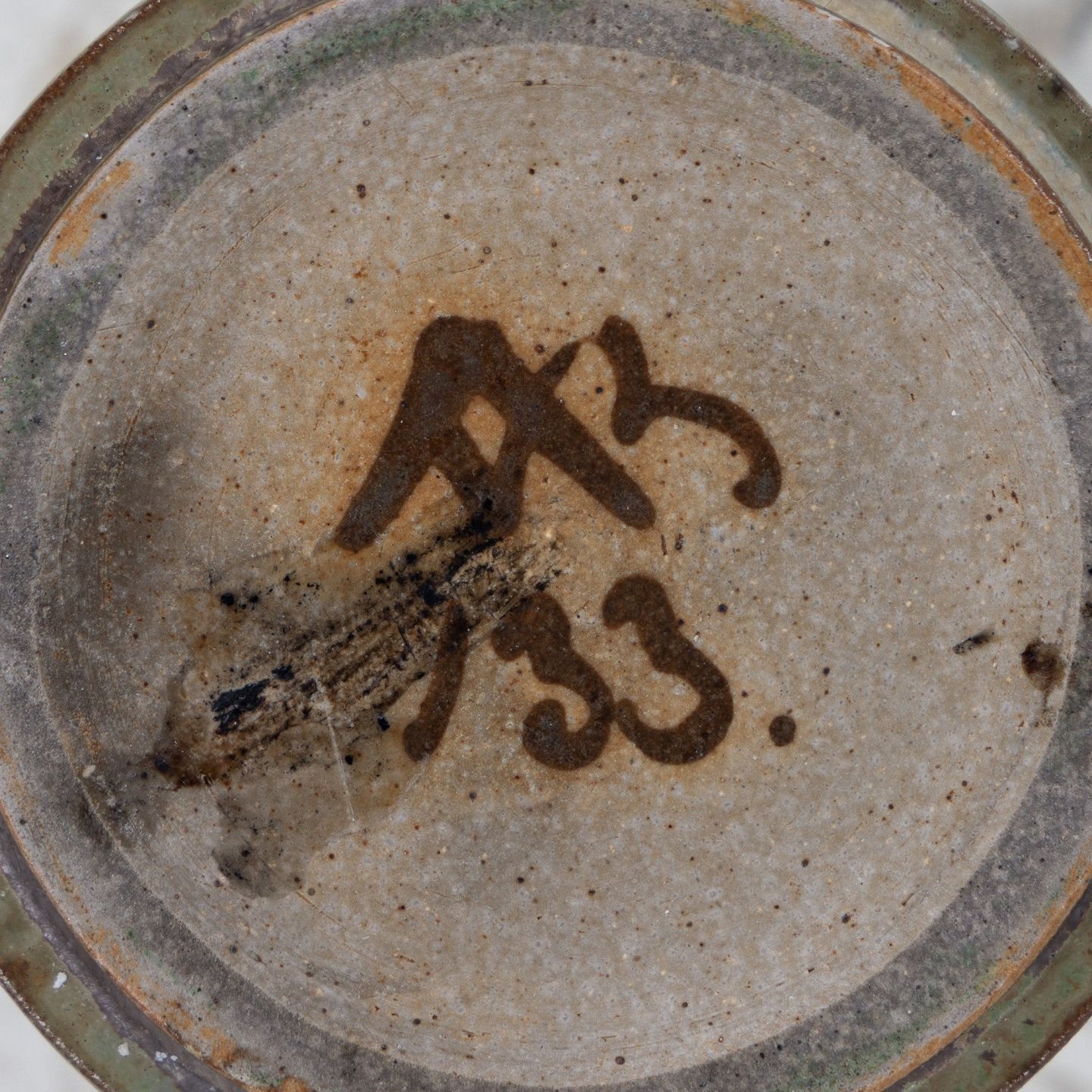 Model AB 133 - Lysestage i riflet stentøj med grøn/brun glasur. Signeret.