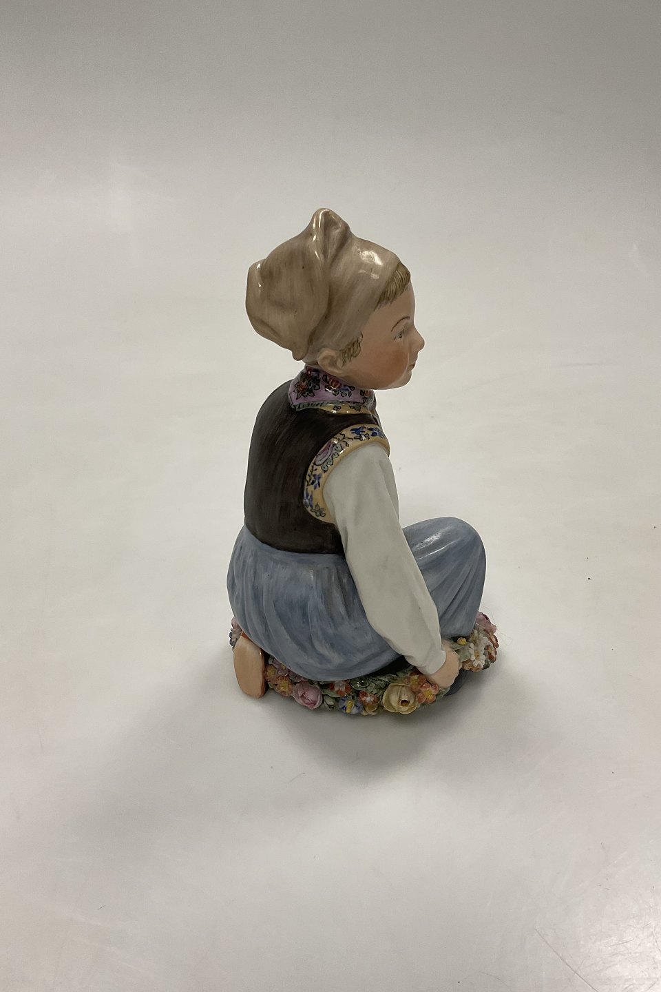 Royal Copenhagen Overglasur Figur Amager Dreng nr. 12414. Måler 15cm(5 29/32 in) har nogle små afslag på blomster.Se venligst detalje foto.Lager: 1