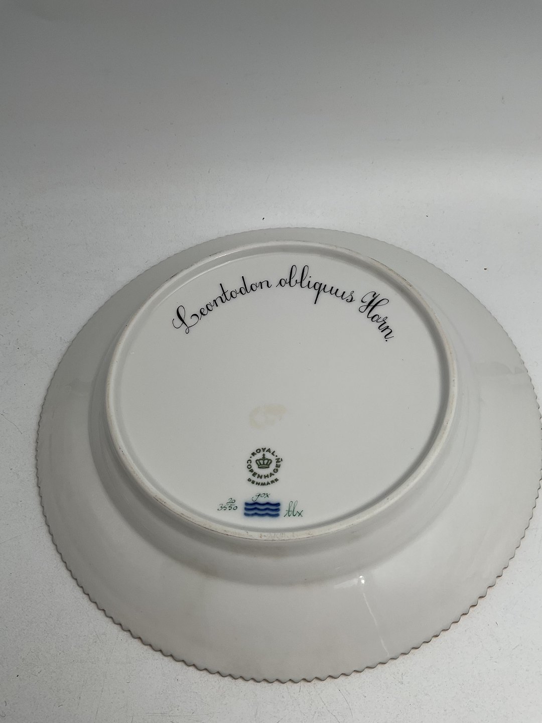Royal Copenhagen Flora Danica Frokosttallerken No. 20/3550 Måler 22 cm. (8.66 inch) 1. Sortering. Latinsk navn: Leontodon obliquis HornLager: 1