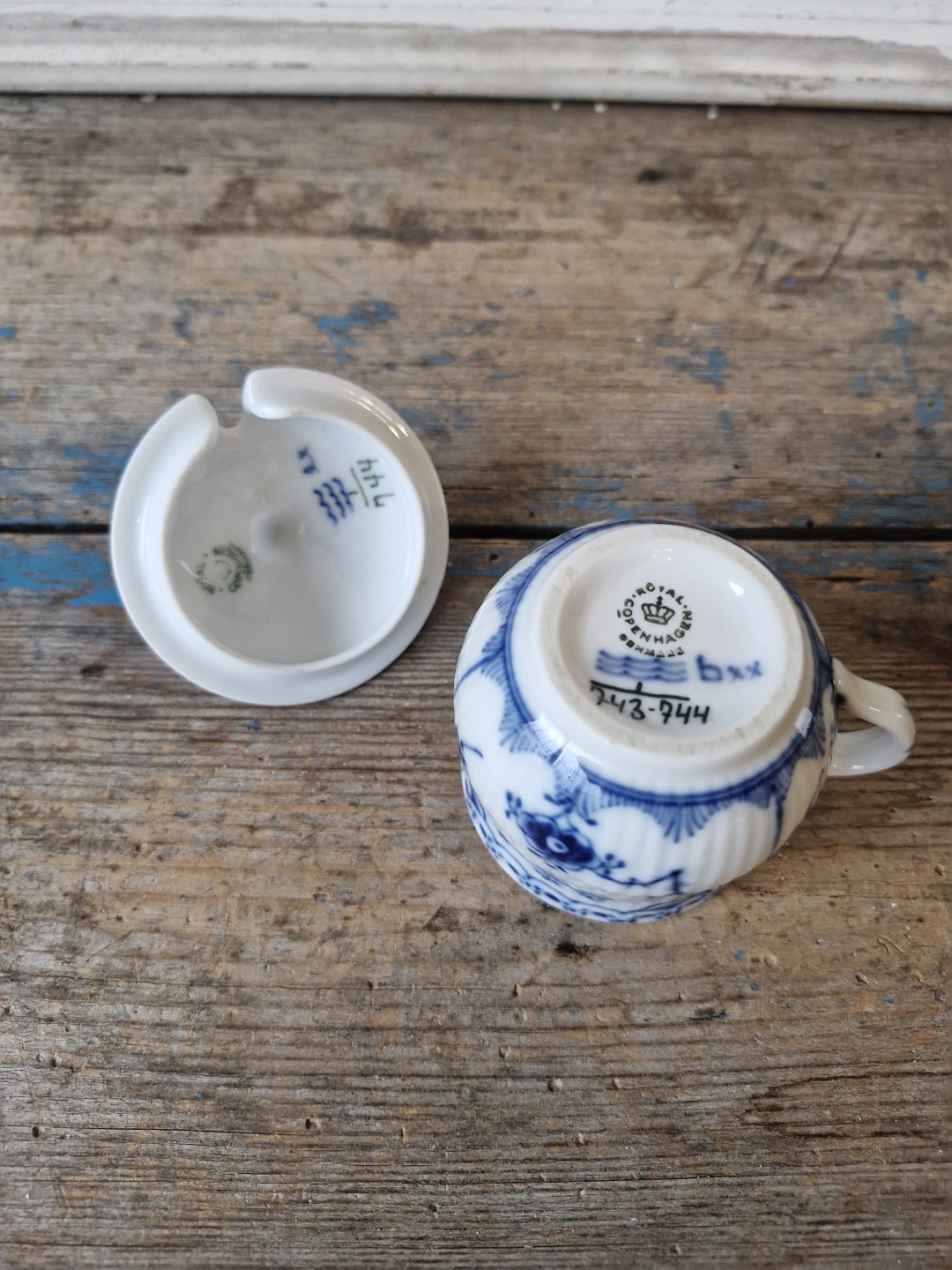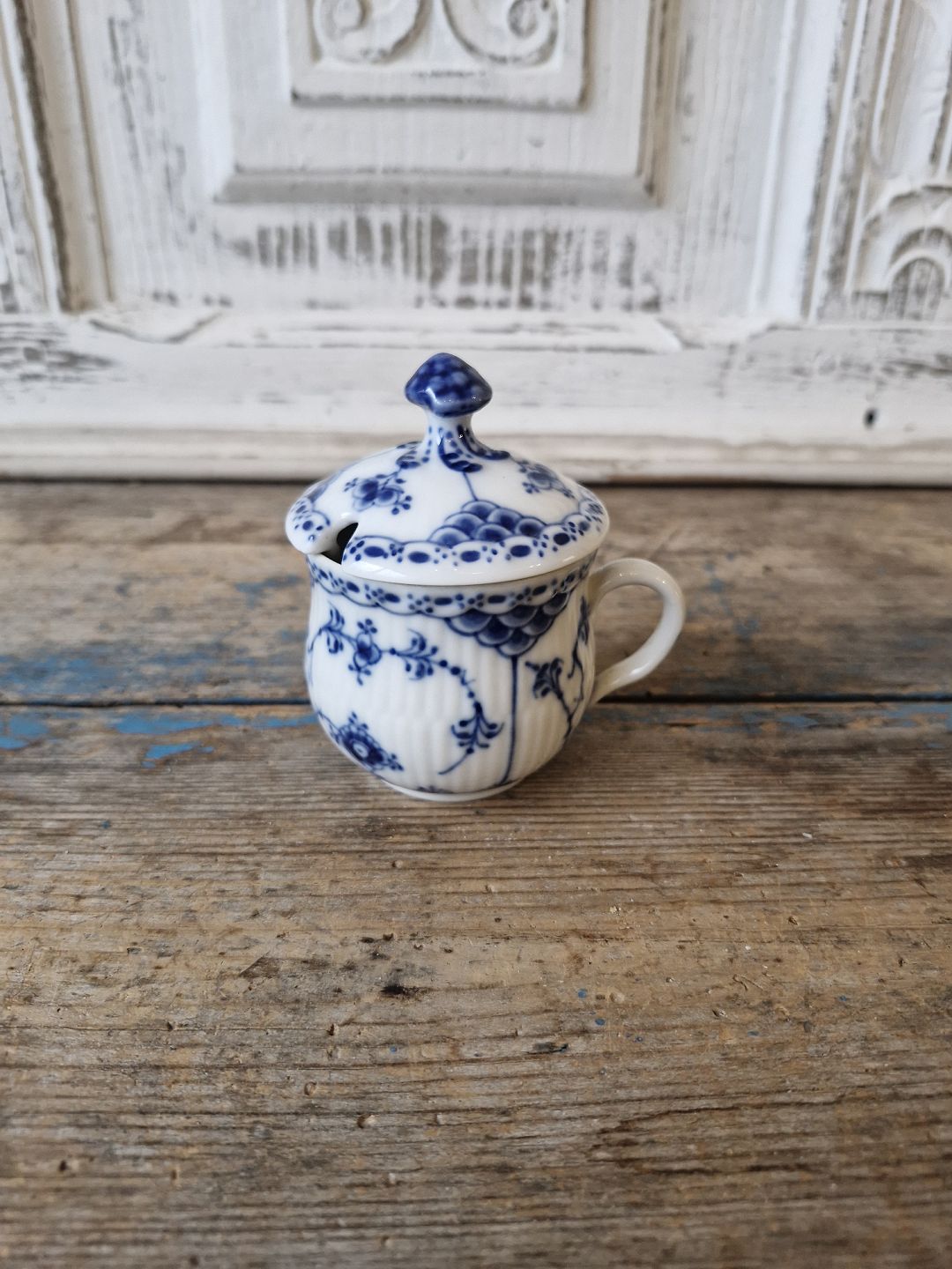 Royal Copenhagen Musselmalet halvblonde sennepskrukkeNo. 744, 1. sortering