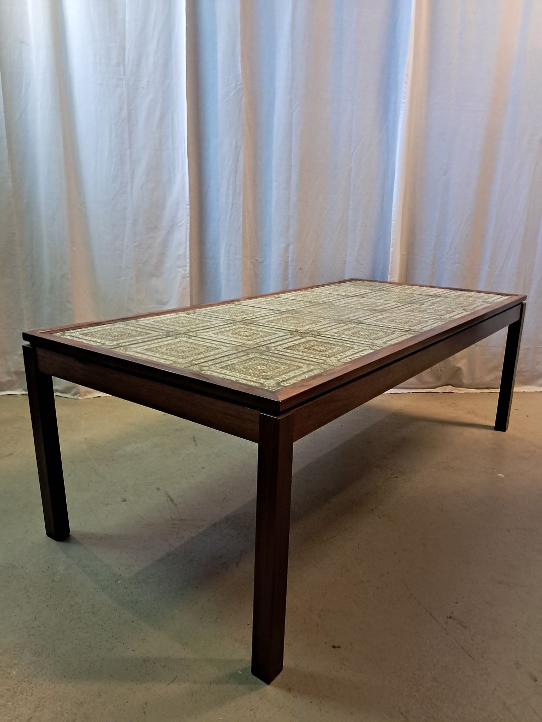 Sofabord i palisander med kakler, fra 1960erne.Det har brugsspor.