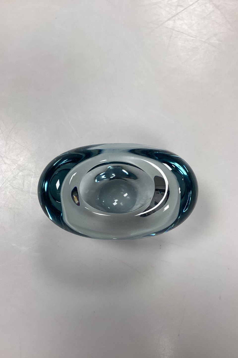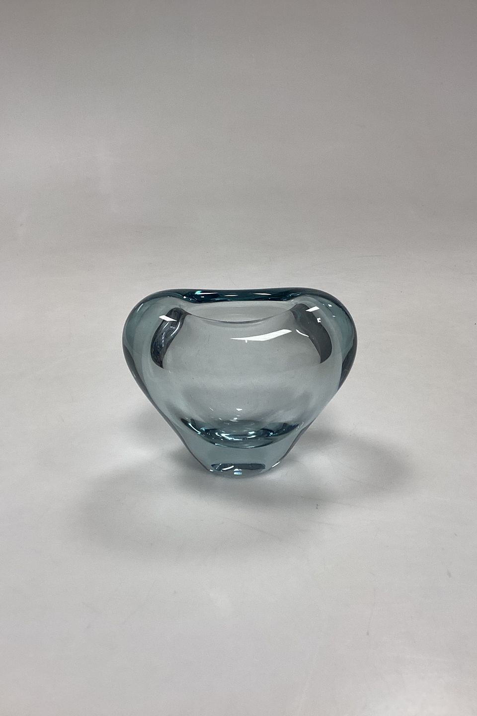 Holmegaard Menuet Glasvase. Farve: Akva. Form: Hjerte. Designet af Per Lütken. I produktion mellem 1955-85. Signeret PL 1961.Måler 8 cm / 3,15 in.