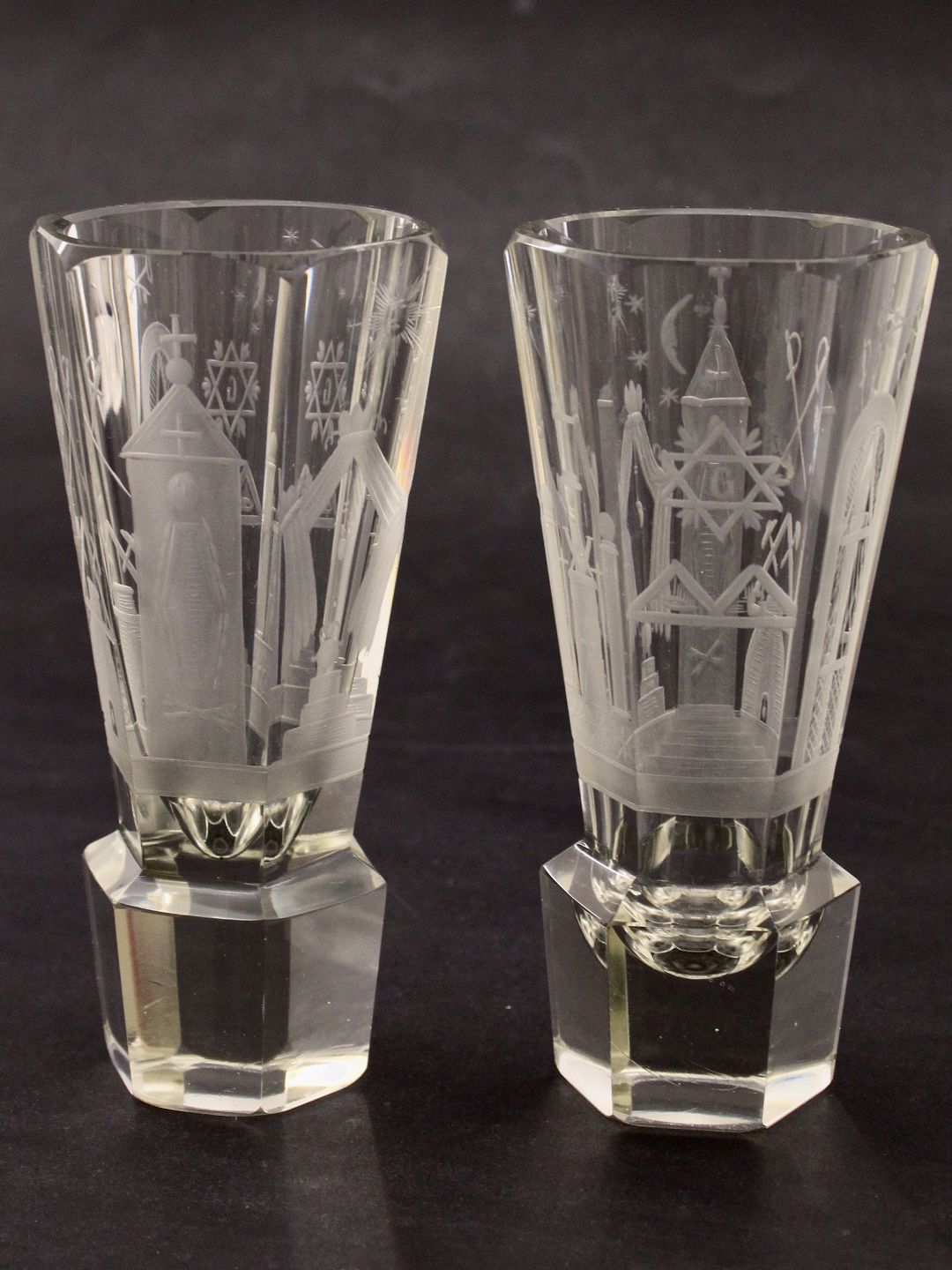 Frimurer glas med mange symboler H.16 cm. emne nr. 632451 Udstiller