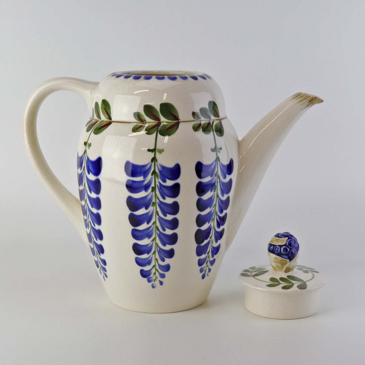Kande til kaffe i fajance fra stellet Blåregn. Stellet er fremstillet i perioden år 1903-1933. Nr. 522/634Formgiver Christian Joachim