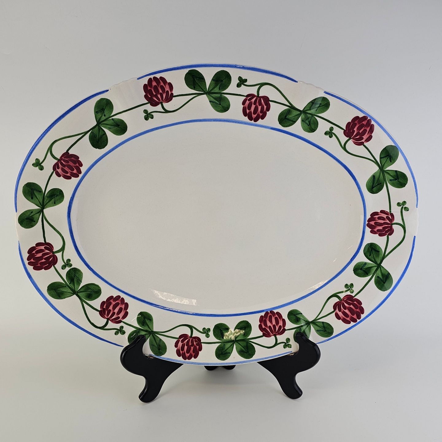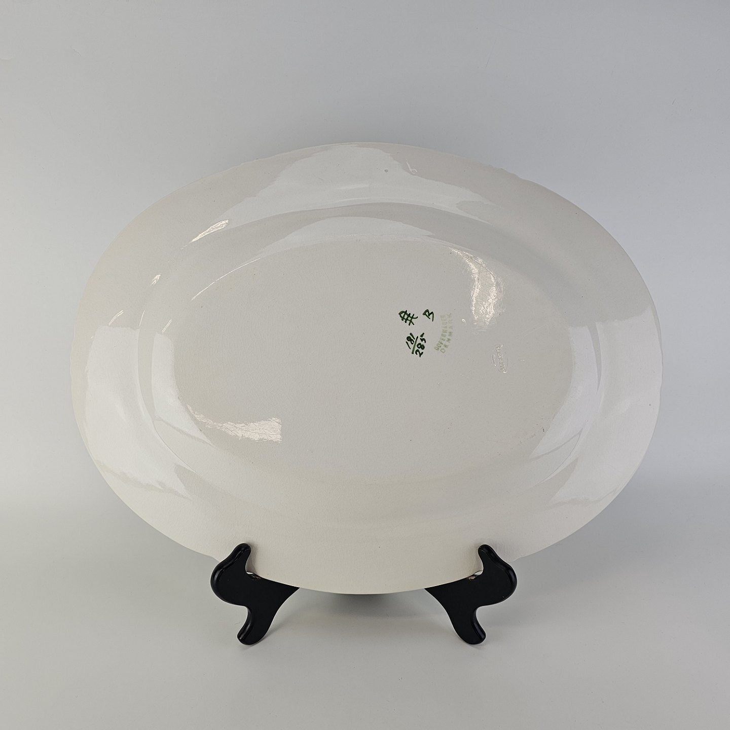 Ovalt fad i kunstfajance fra stellet Kløver. Nr. 181/285Formgiver H. Slott-Møller år 1904