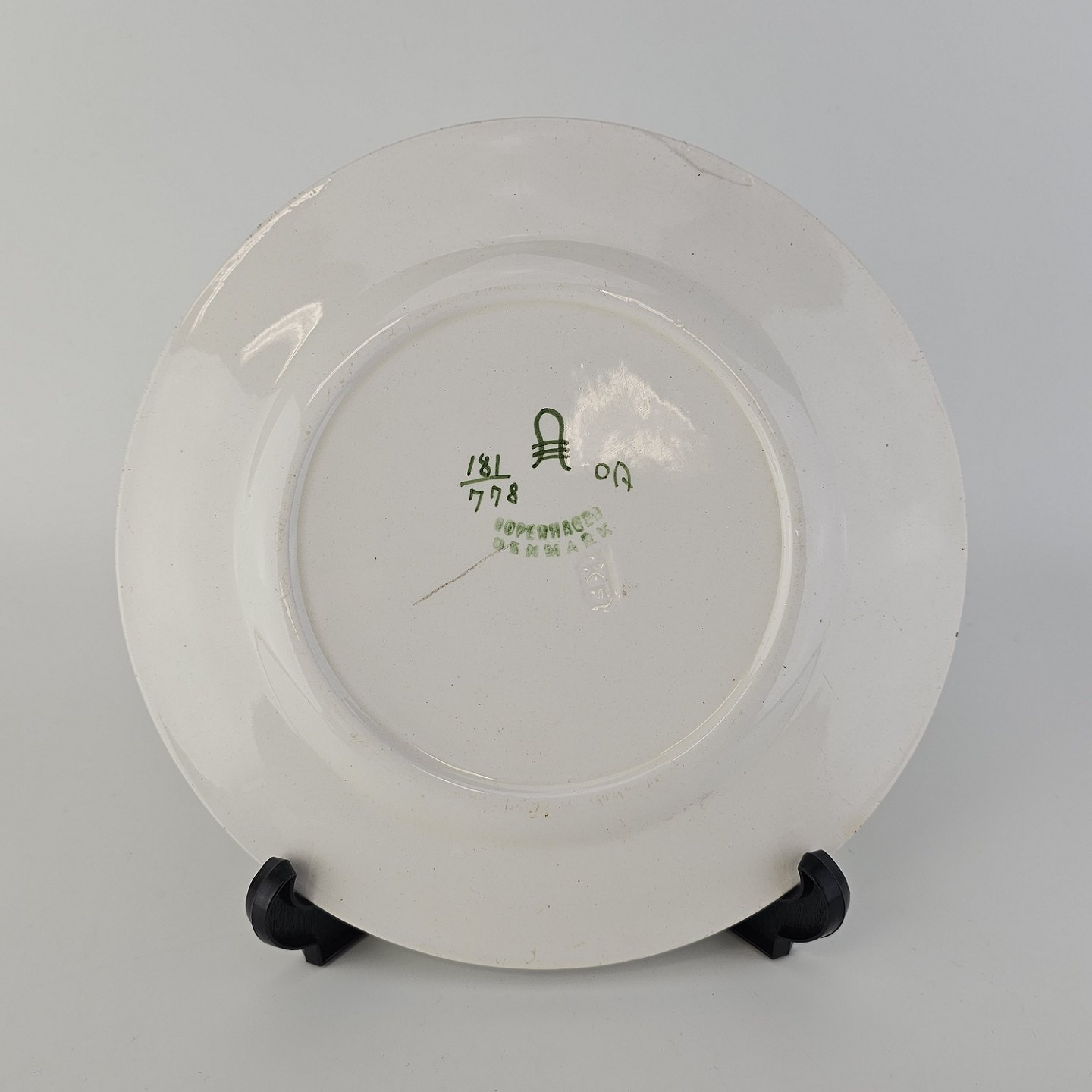 Tallerken i kunstfajance fra stellet Kløver. Nr. 181/778Formgiver H. Slott-Møller år 1904