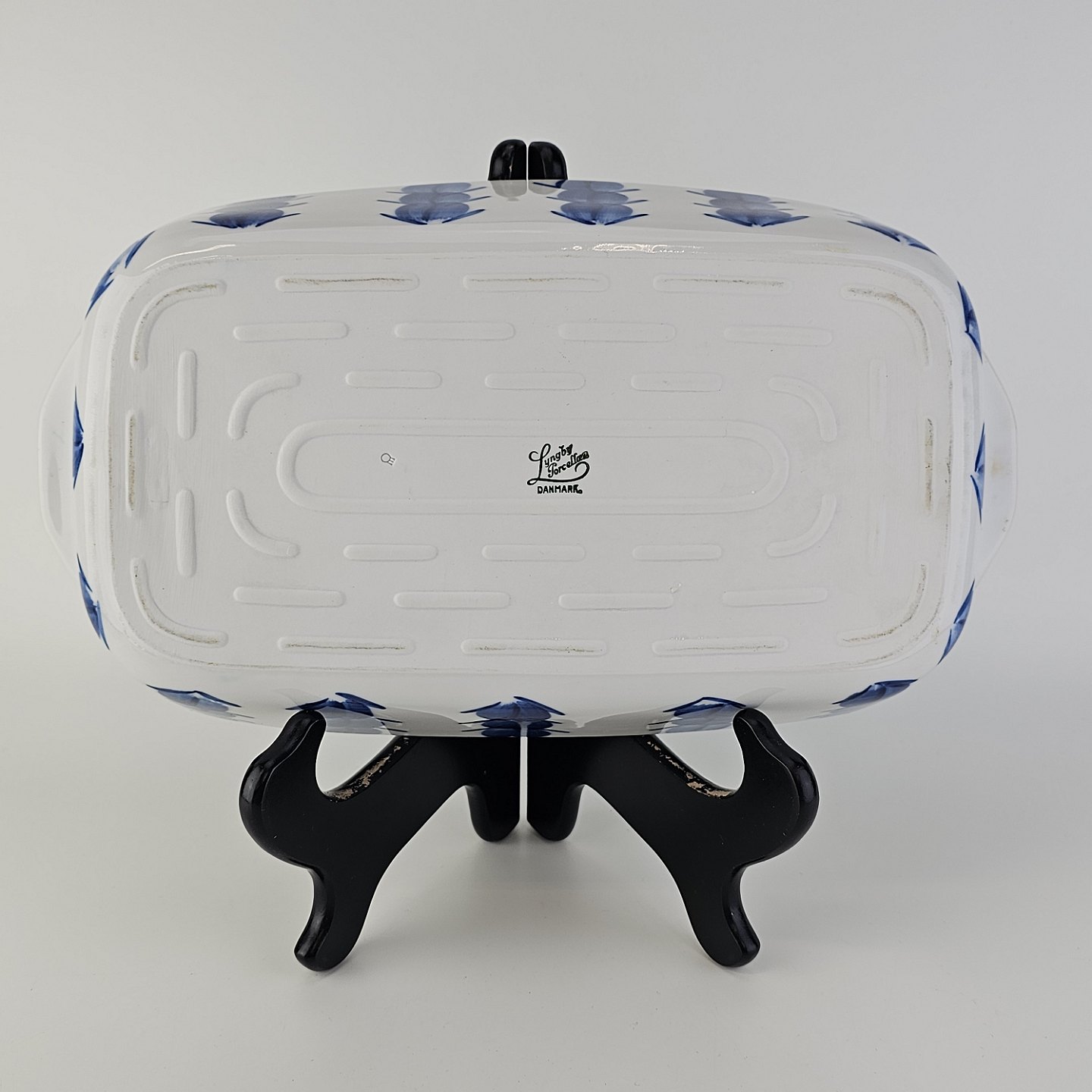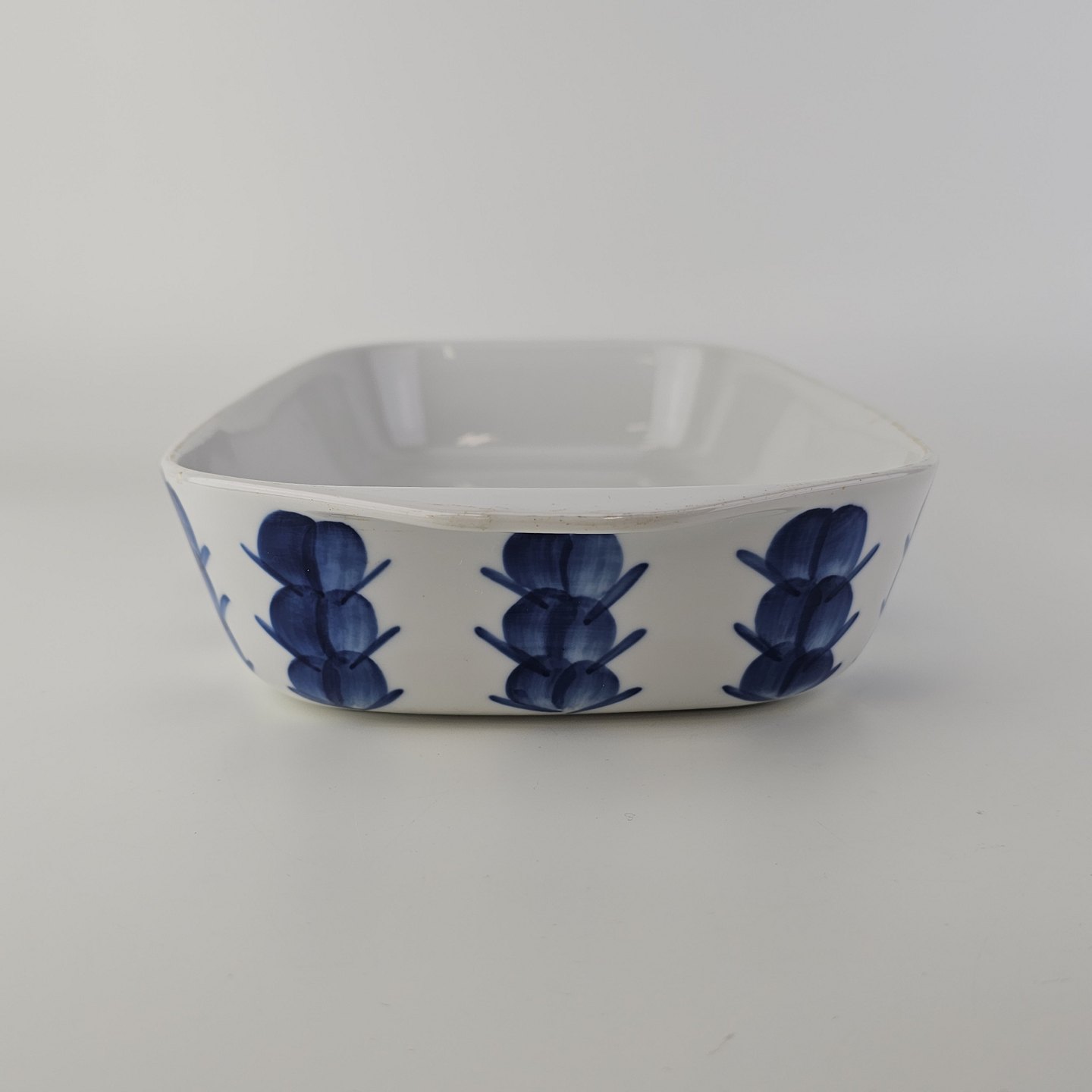 Firkantet ildfast fas i porcelæn fra Stellet Danild 30, også kaldet BlomsterknopProducent Porcelænsfabrik Danmark